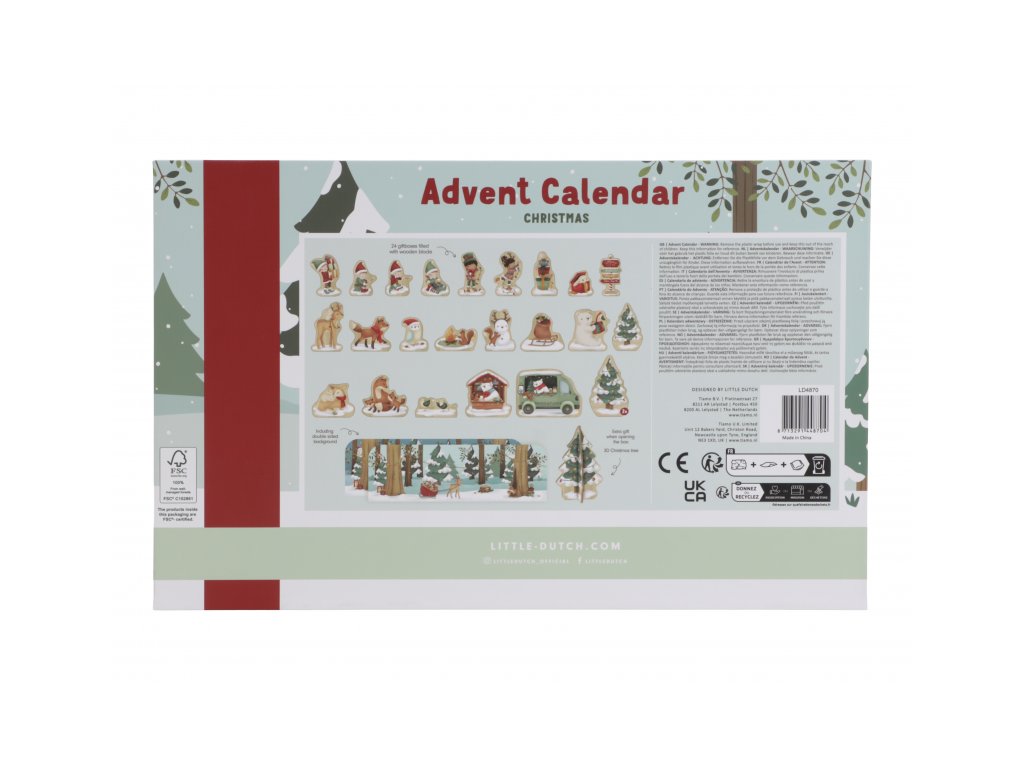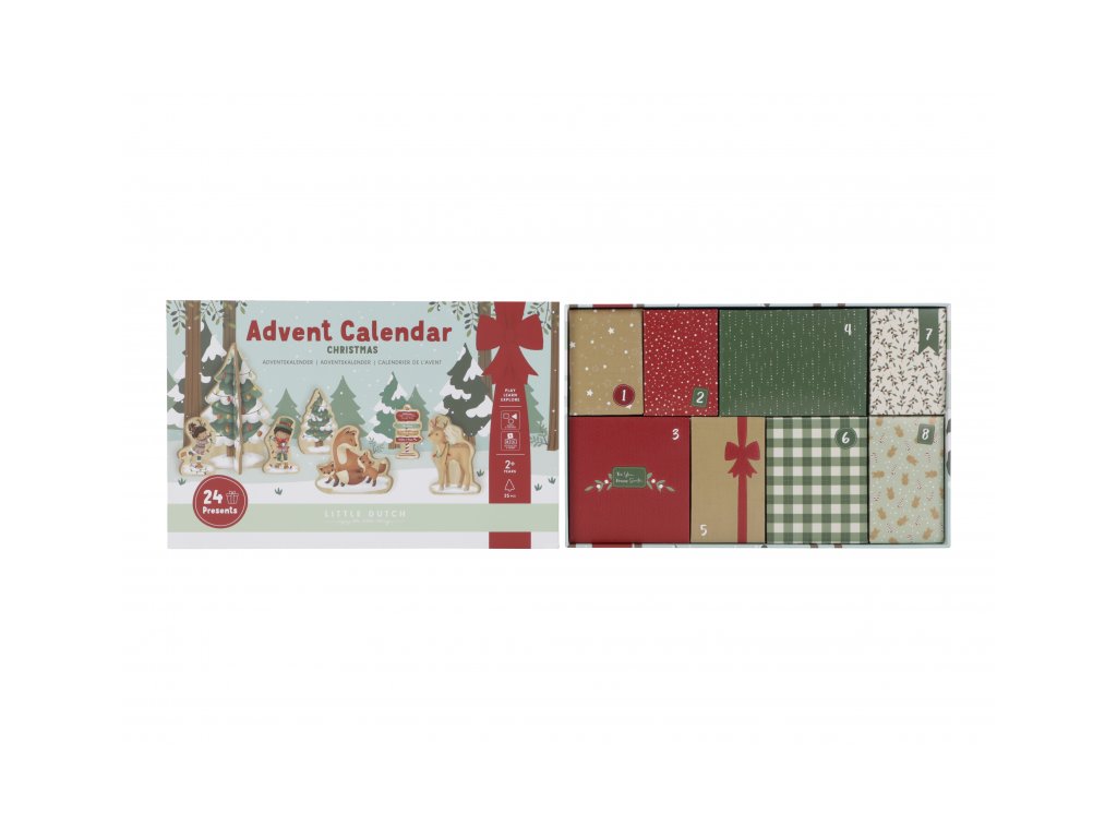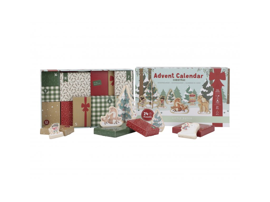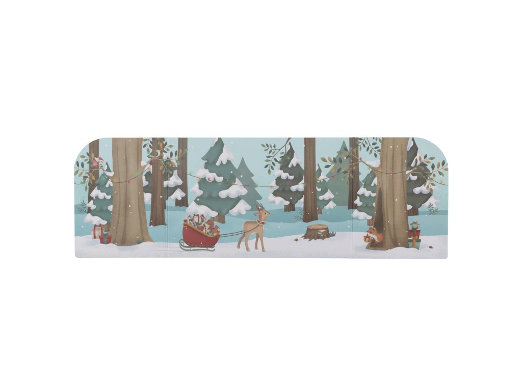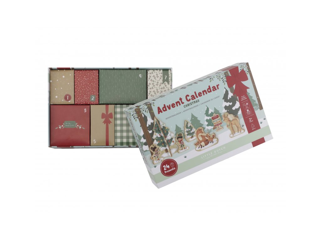 Originální adventní kalendář zpříjemní celé vaší rodině čas těšení se na Vánoce. Užijte si spolu s vaším dítětem krásné adventní období, které je ideální pro vyprávění příběhů a snění o bílých Vánocích. Kalendář je tvořen 24 balíčky, ze kterých si dítě postupně sestaví vlastní vánoční vesničku. Oboustranný pevný kartonový díl s krásnými ilustracemi nabízí pozadí zasněženého lesa ve dne a v noci. Každý balíček obsahuje dřevěnou postavičku, zvířátko, zasněžený strom, sáňky, sněhuláka apod. s krásným oboustranným potiskem. Adventní kalendář je opakovaně použitelný a potěší vás i vaše děti každé Vánoce. Rozměry: 34 x 22 x 75 cm Vhodné pro děti od 2 let.