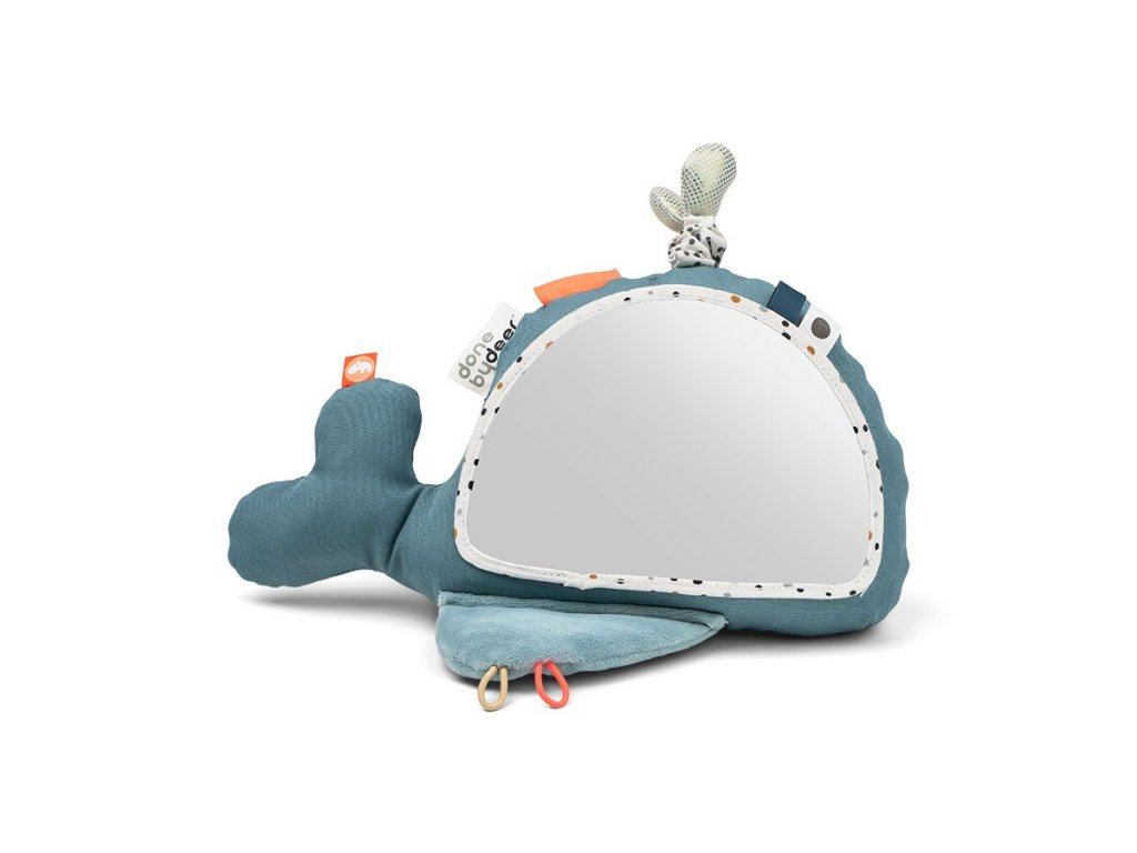 Malé děti baví jejich vlastní odraz, díky kterému je podlahové zrcadlo ideální pro povzbuzení trénování pozice na bříšku. Mnoho senzorických funkcí je povzbudí k delšímu a aktivnějšímu pobytu na břiše. Zrcadlo Wally je navrženo se smyslovými aktivitami, jako jsou barevné štítky, hmatové textury, zvuky - je toho tolik, na co se dívat a zkoumat. Zrcadlo s výplní pytle s pískem stojí pevně na podlaze a lze s ním snadno pohybovat. Roztomilá Wally ukrývá pod svou ploutví malého rybího přítele.