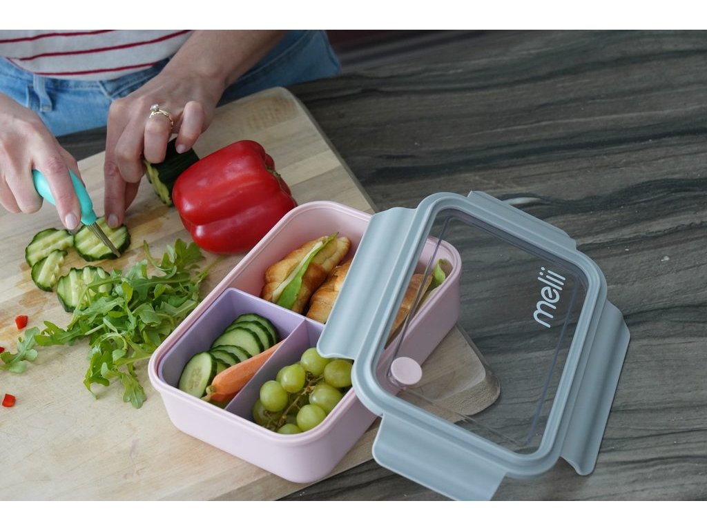 Svačinové bento boxy kanadské značky Melii se třemi odděleními přihrádkami jsou barevné a navíc tak praktické! Krabička má velký prostor o objemu 1250 ml a menší rozdělenou vyjímatelnou přihrádku o objemu 2x 260 ml.