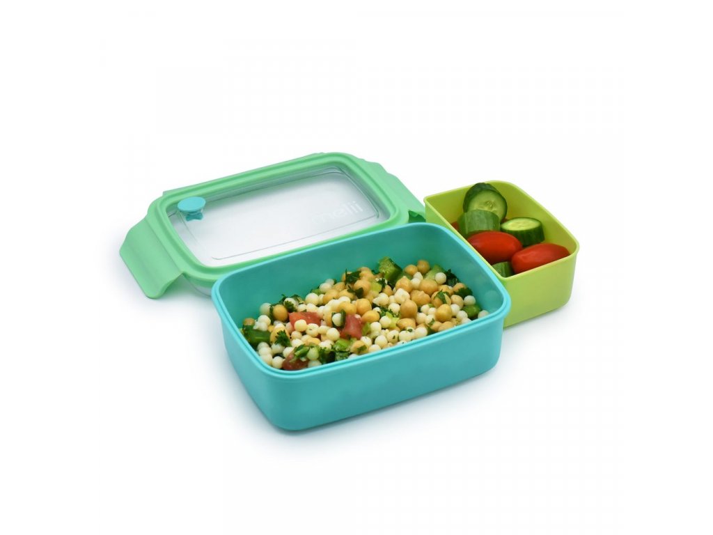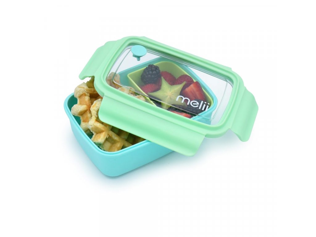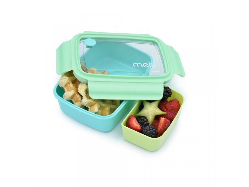 Svačinové bento boxy kanadské značky Melii se dvěma odděleními prostory jsou barevné a navíc tak praktické! Krabička má velký oddíl o objemu 880 ml a druhou menší odnímatelnou přihrádku o objemu 280 ml. Bento box můžete používat s nebo bez odnímatelného oddílu.