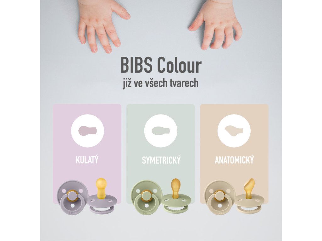 Oblíbené BIBS Colour dudlíky nyní také v ortodontických verzích – symetrický tvar nebo anatomický tvar.