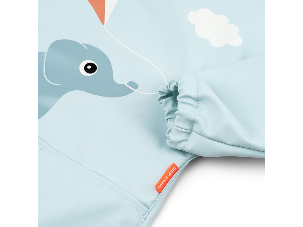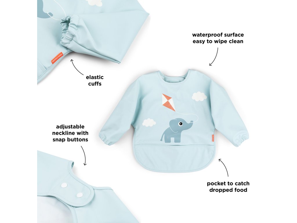 Tento roztomilý bryndáček hezké barvy má roztomilý motiv Elphee pouštějícího draka. Bryndáček zajišťuje čistotu svým voděodolným povrchem a chrání oblečení před politím a nepořádkem. Rukávy udržují oblečení vašeho dítěte v bezpečí.