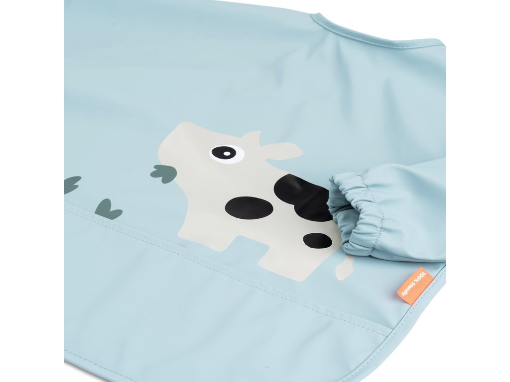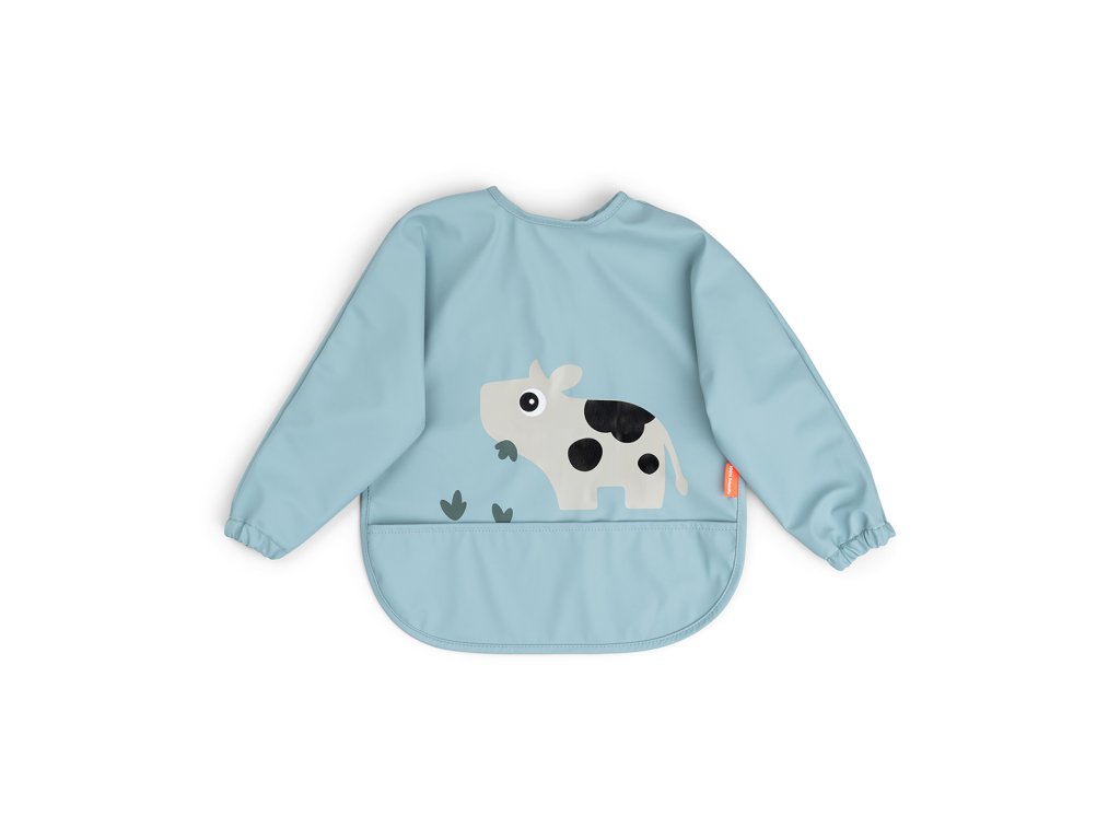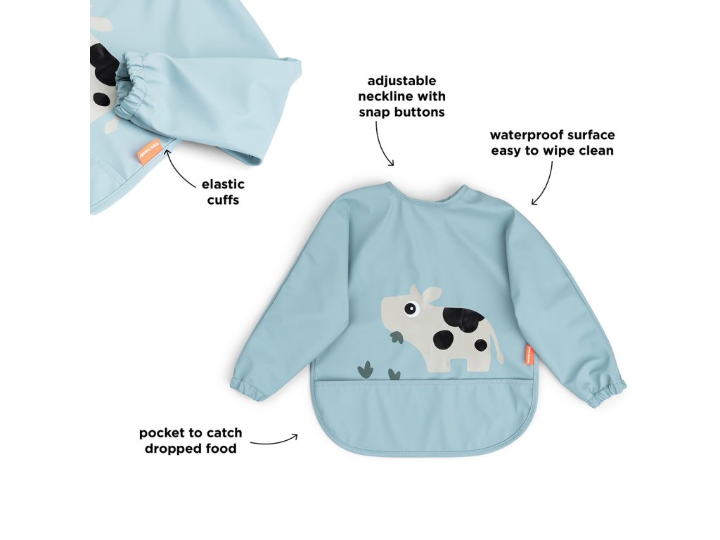 Tento roztomilý bryndáček hezké barvy má roztomilý motiv kravičky Dotti. Bryndáček zajišťuje čistotu svým voděodolným povrchem a chrání oblečení před politím a nepořádkem. Rukávy udržují oblečení vašeho dítěte v bezpečí.