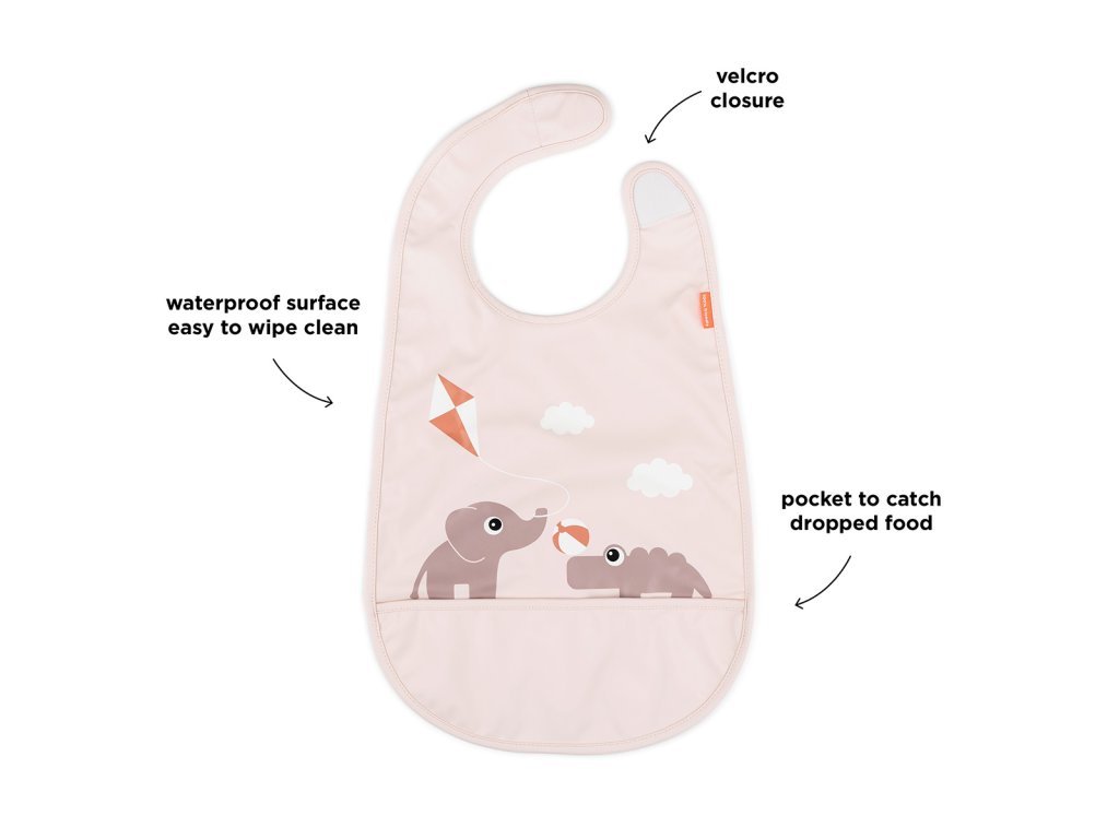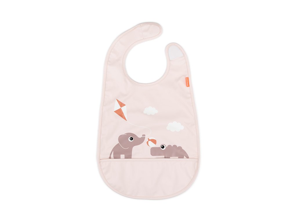 Tento praktický bryndáček v roztomilé pudrové barvě je navržen tak, aby vám i vašemu děťátku udělal zábavu při jídle. Tento bryndáček s hravým motivem Elphee a Croca užívajících si hřiště dodává každému jídlu nádech hravosti.