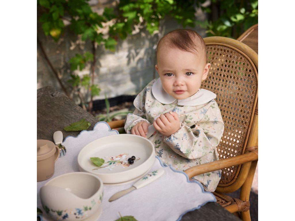 Praktický bryndák s rukávy z nové jarní kolekce si zamilujete. Je potažen pogumovanou vrstvičkou, která ochraňuje bryndák, aby byl snadno opláchnutelný, stíratelný a rychle čistý po každém použití. Přední kapsa zachytí drobky a kapky od pití. Bryndák se snadno nandavá a sundavá díky uzavírání na suchý zip. Vyrobeno bez použití PVC a ftalátů.