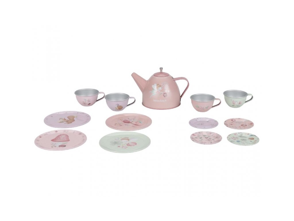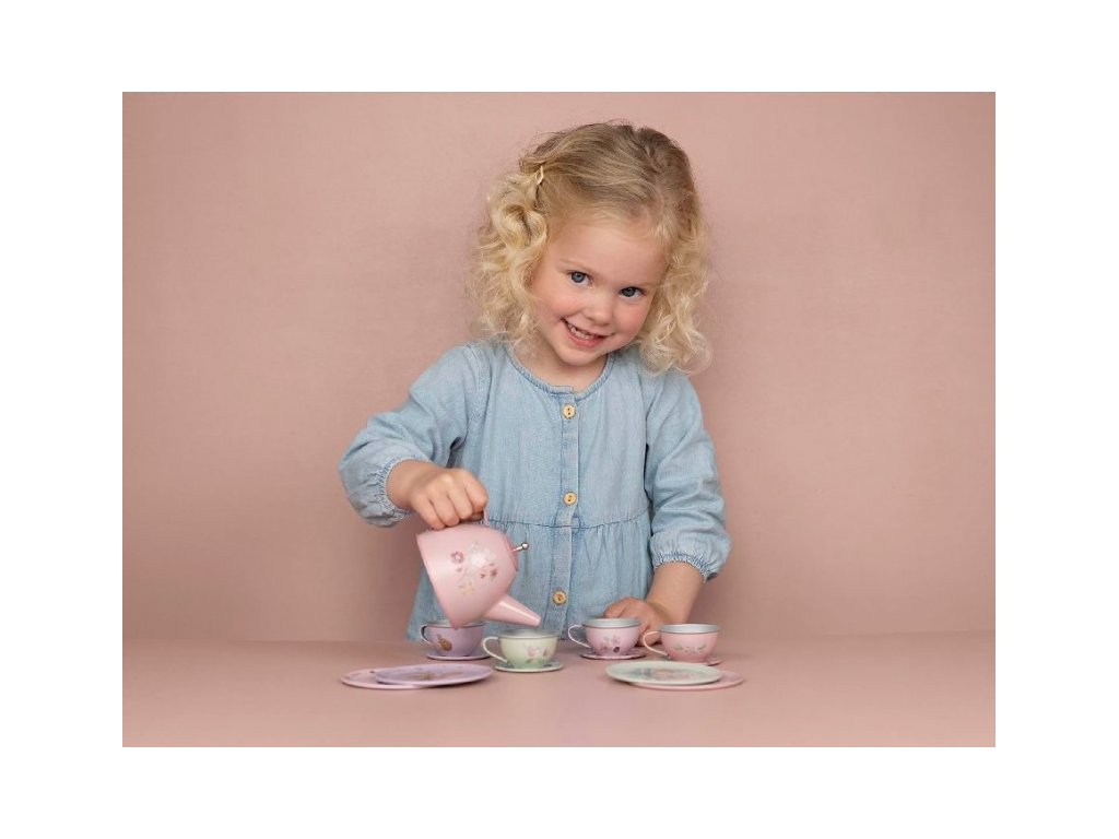 Neodolatelná sada čajové konvičky a čtyř hrníčků s podšálky v kvalitním kovovém provedení s krásným potiskem motivů ze života na zahradě. Sada potěší malou hostitelku či hostitele při pořádání čajového dýchánku pro panenky nebo pro kamarády. 13-dílná sada je součástí designové kolekce hraček a doplňků Little Dutch Fairy Garden inspirované životem na zahradě. Vhodné pro děti od 3 let.