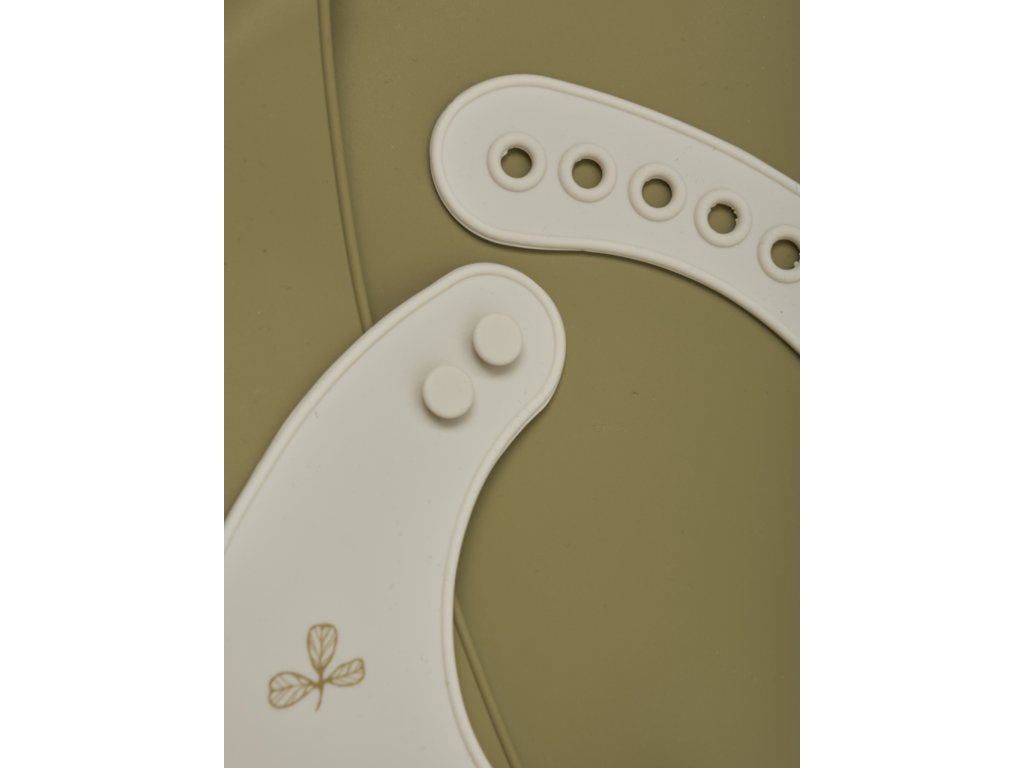 Sada dvou silikonových bryndáčků s kapsou na zachycení jídla.