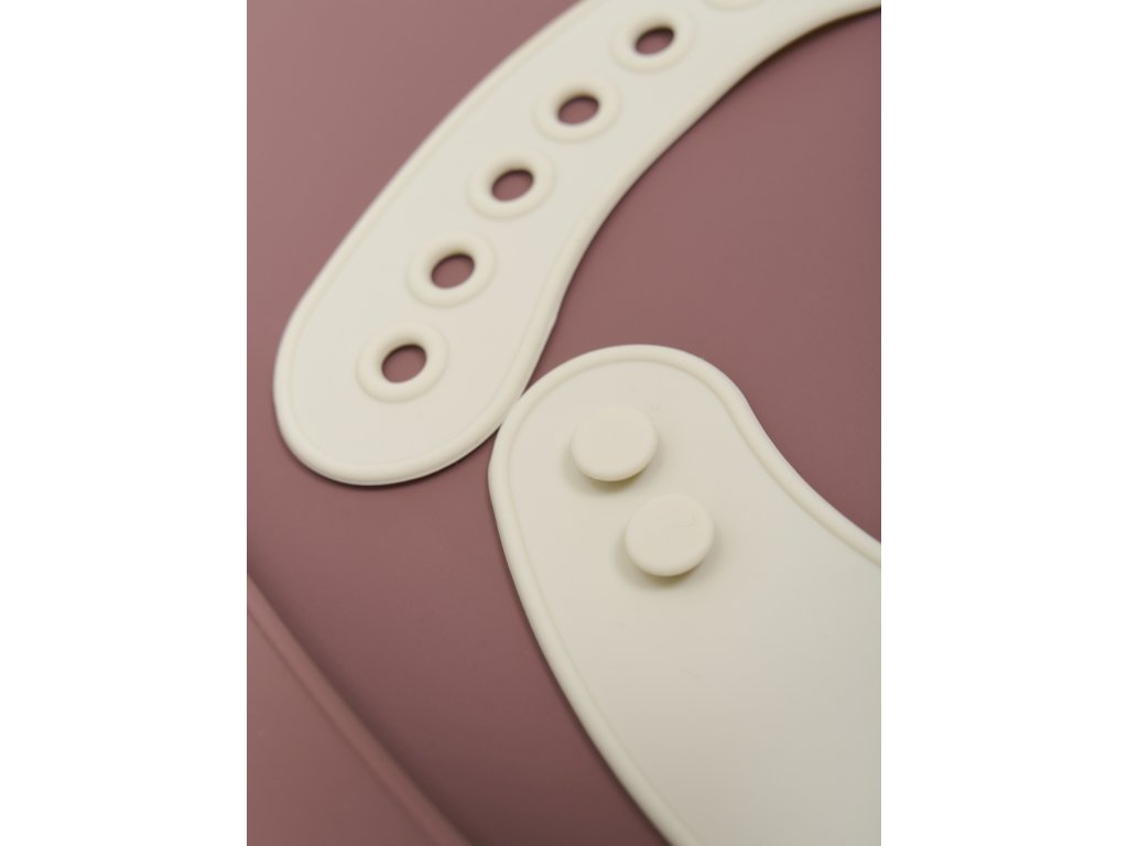 Sada dvou silikonových bryndáčků s kapsou na zachycení jídla.