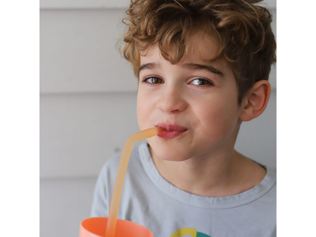 Vysoce kvalitní silikonové brčko, které je opakovaně použitelné, a má dlouhou životnost, je měkké a citlivé k dětským dásním. Lze jej bezpečně používat s teplými a studenými tekutinami. Zkosená špička v horní části umožňuje snadné pití a malá prohlubeň na špičce brčka poskytuje pohodlí při pití.
