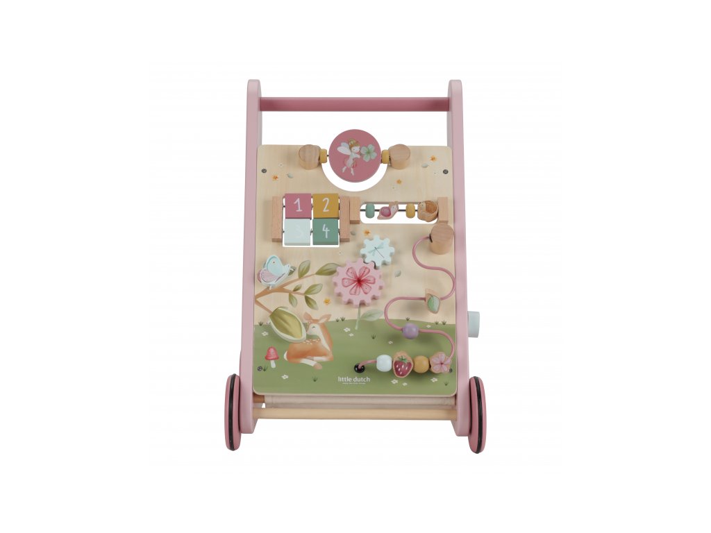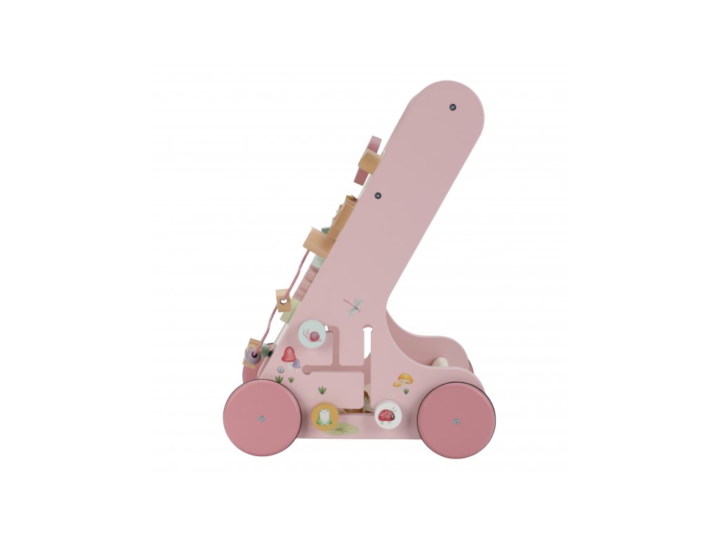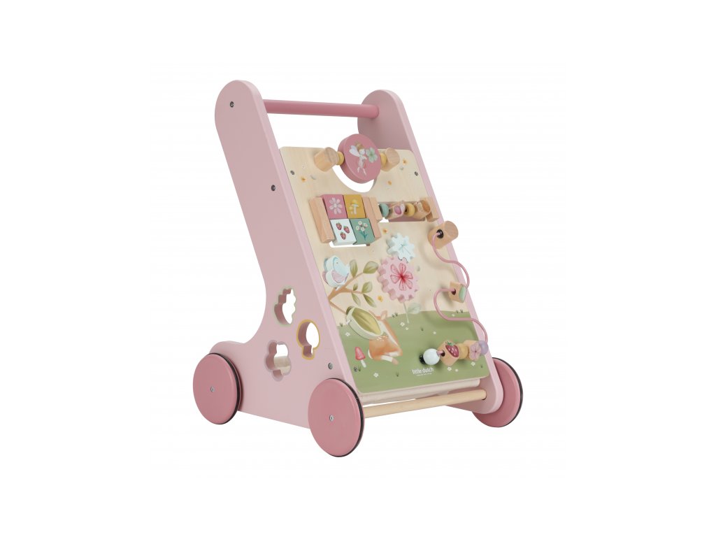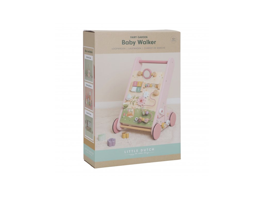 Gumová kolečka nebudou dělat žádné stopy na podlaze a jsou bezpečná pro použití v interiéru. Chodítko je součástí designové kolekce hraček a doplňků Little Dutch Fairy Garden inspirované životem na zahradě.