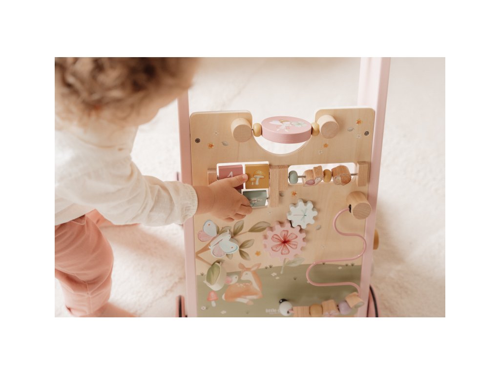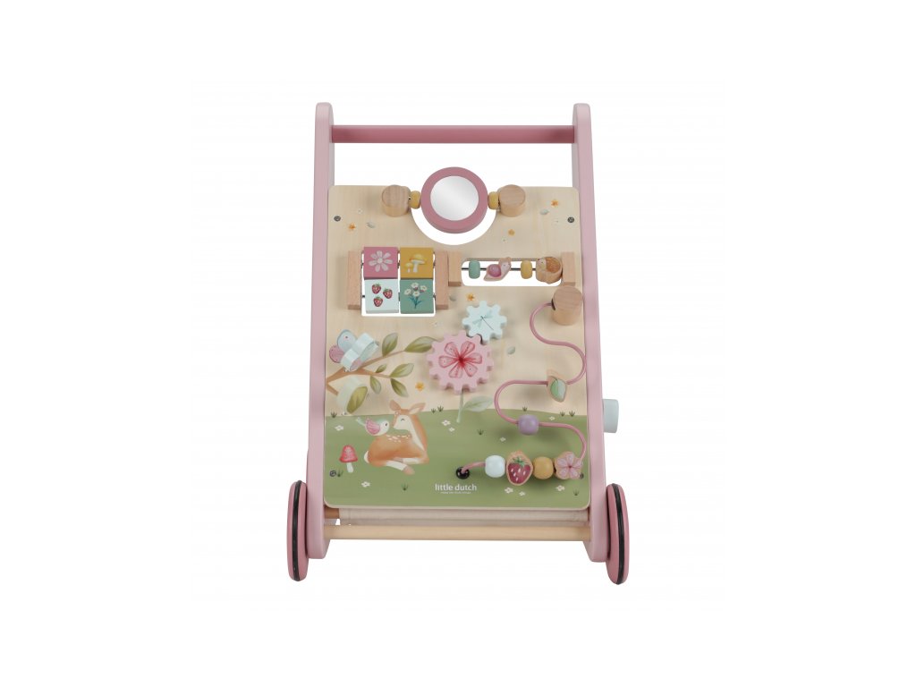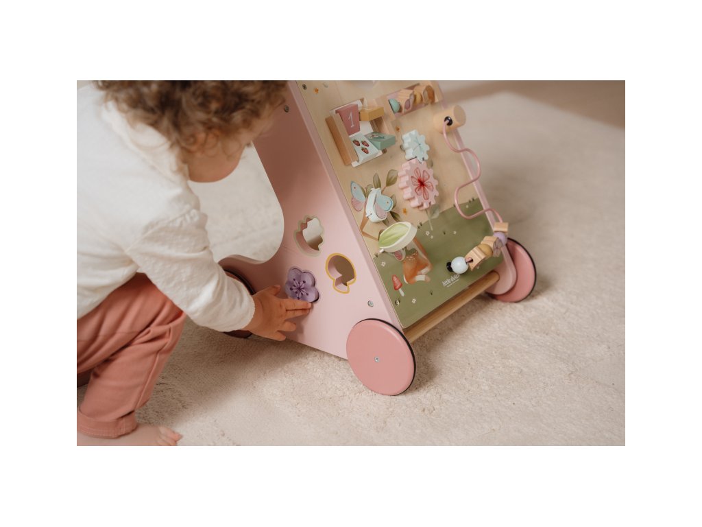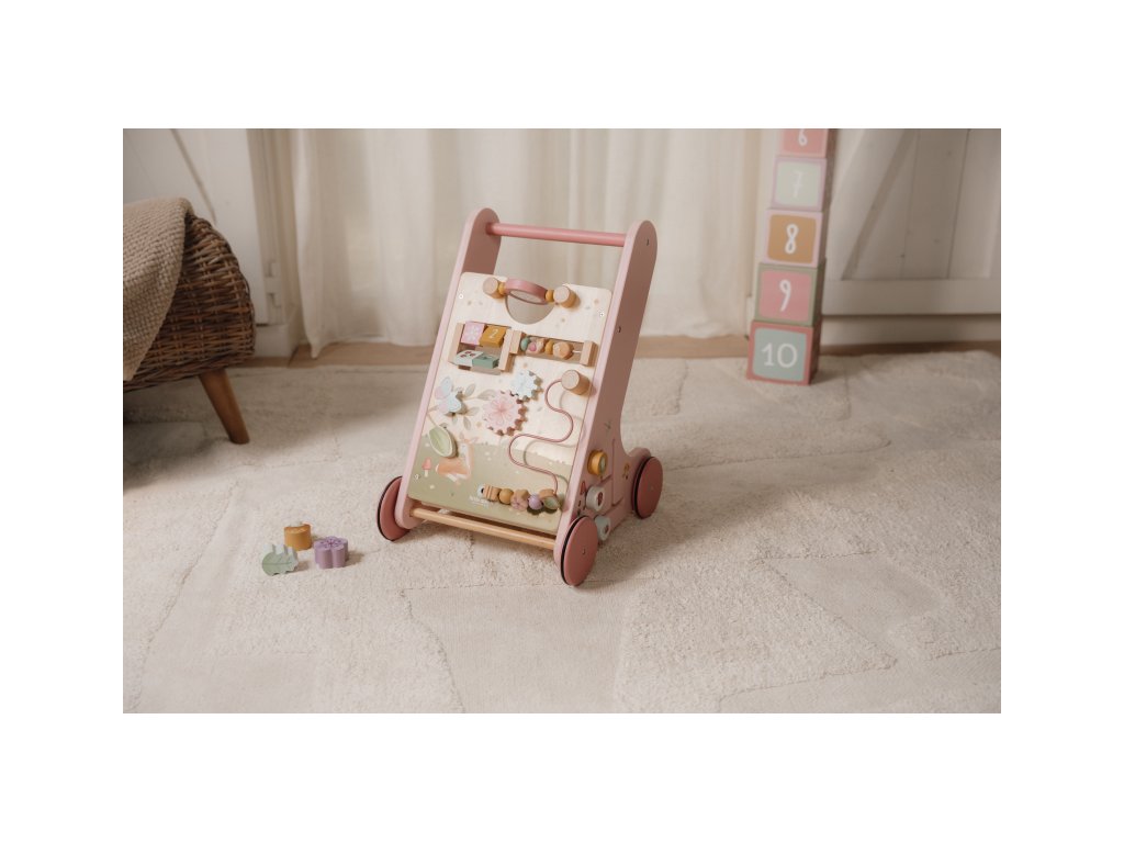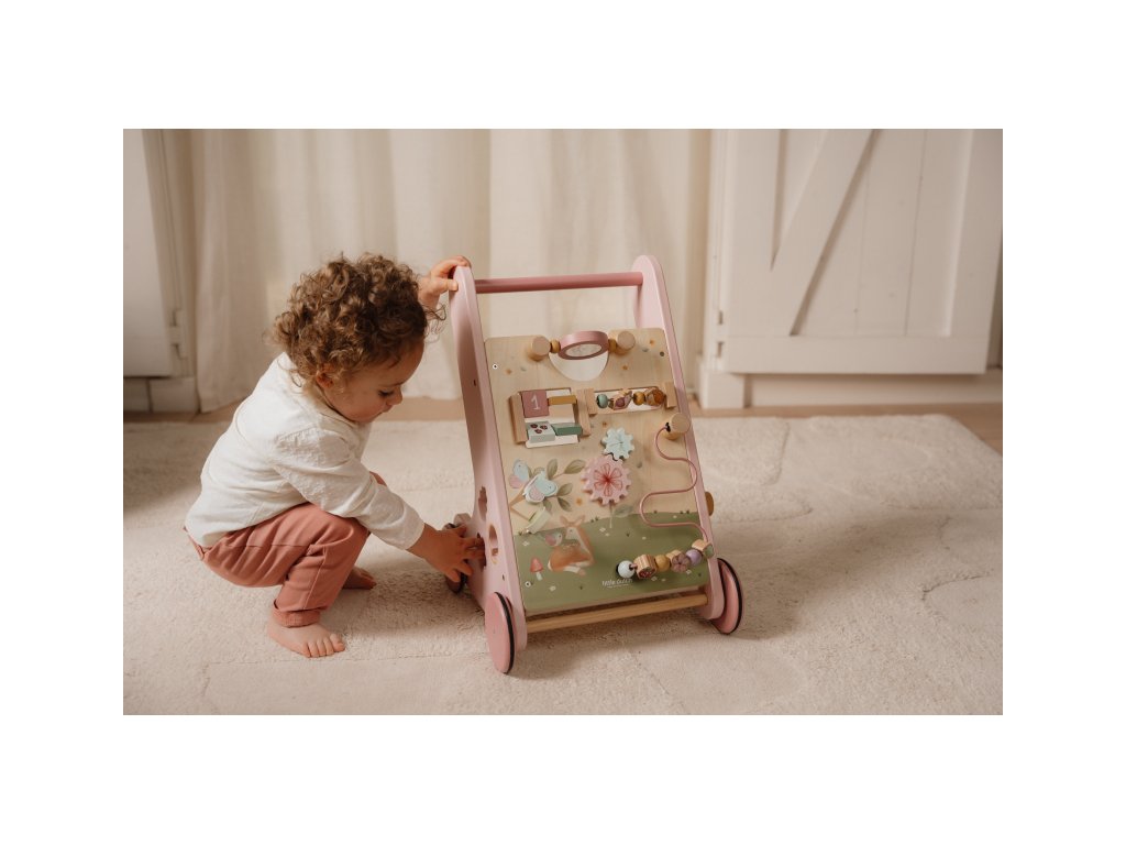 Gumová kolečka nebudou dělat žádné stopy na podlaze a jsou bezpečná pro použití v interiéru. Chodítko je součástí designové kolekce hraček a doplňků Little Dutch Fairy Garden inspirované životem na zahradě.