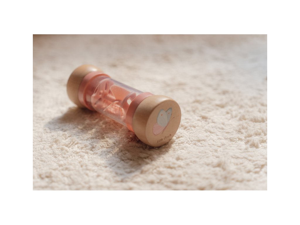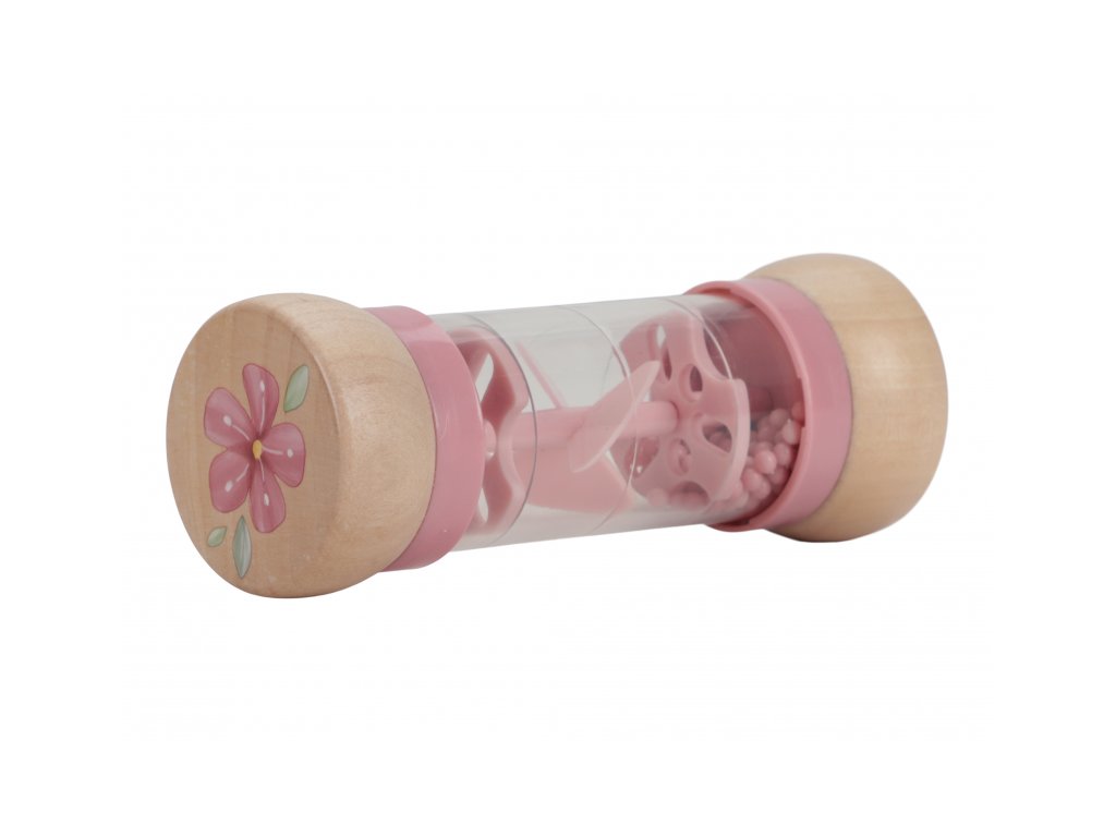 Chrastítko v krásném provedení v kombinaci dřeva a plastu. Korálky i otočná vrtule uvnitř chrastítka při pohybu jemně chrastí. Tvar hračky umožňuje snadné uchopení dětskými ručičkami. Hračka je součástí designové kolekce hraček a doplňků Little Dutch Fairy Garden inspirované životem na zahradě. Vyrobeno z dřeva certifikovaného FSC. Rozměry: 14 x 5,4 x 5,4 cm Vhodné pro děti od 3 měsíců.