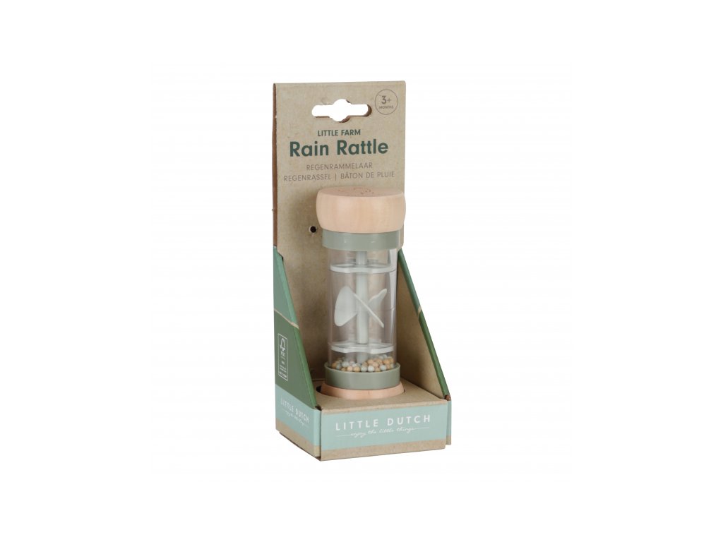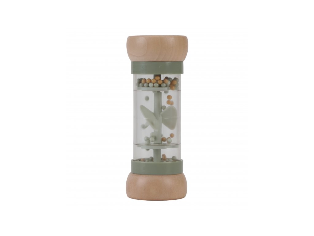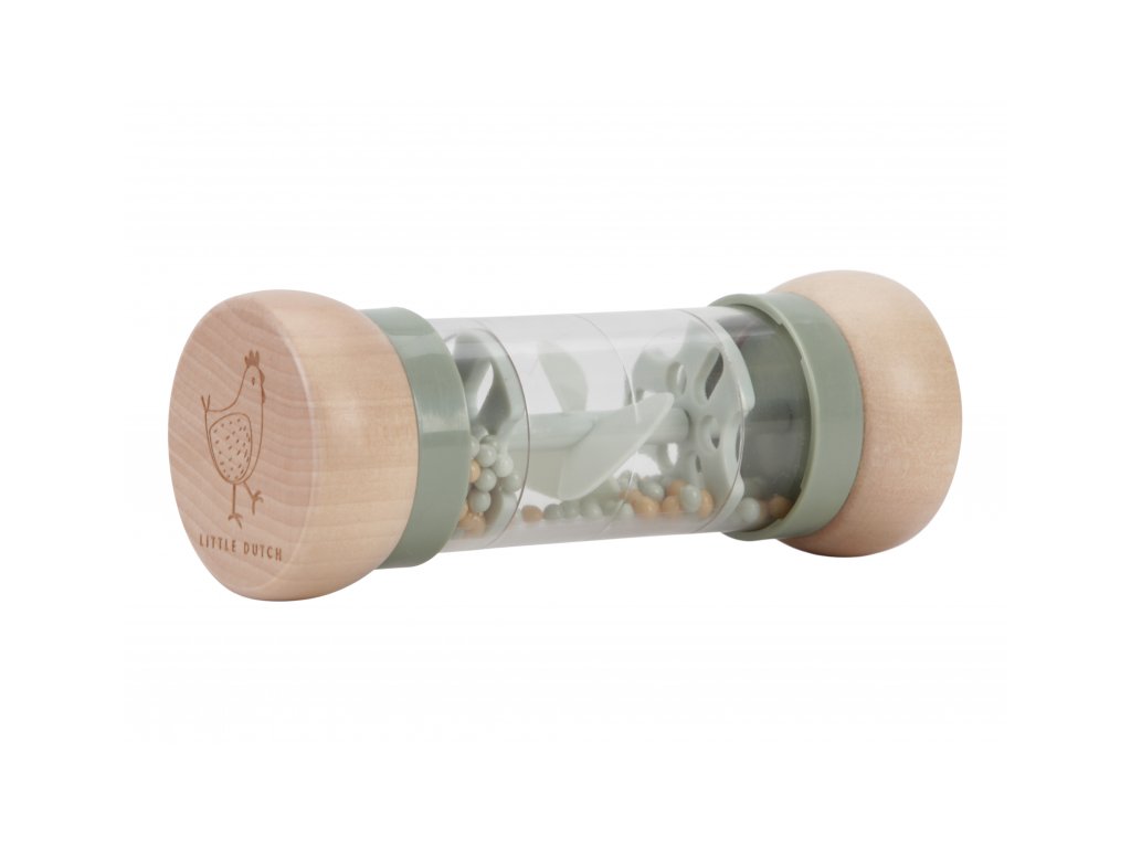 Chrastítko v krásném provedení v kombinaci dřeva a plastu. Korálky i otočná vrtule uvnitř chrastítka při pohybu jemně chrastí. Tvar hračky umožňuje snadné uchopení dětskými ručičkami. Hračka je součástí designové kolekce hraček a doplňků Little Dutch Farma. Vyrobeno z dřeva certifikovaného FSC. Rozměry: 14 x 5,4 x 5,4 cm Vhodné pro děti od 3 měsíců.