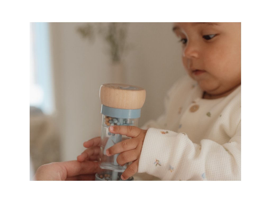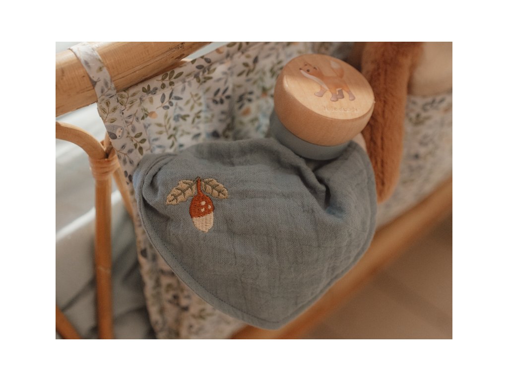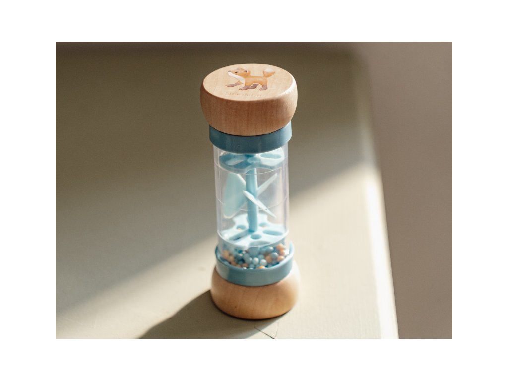 Chrastítko v krásném provedení v kombinaci dřeva a plastu. Korálky i otočná vrtule uvnitř chrastítka při pohybu jemně chrastí. Tvar hračky umožňuje snadné uchopení dětskými ručičkami. Hračka je součástí designové kolekce hraček a doplňků Little Dutch Forest Friends inspirované životem v lese.