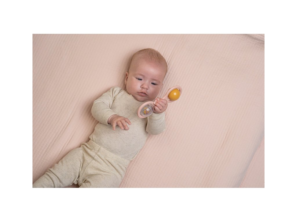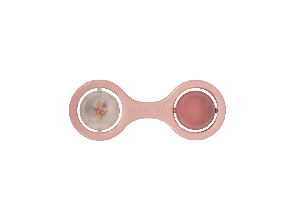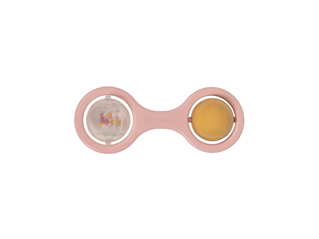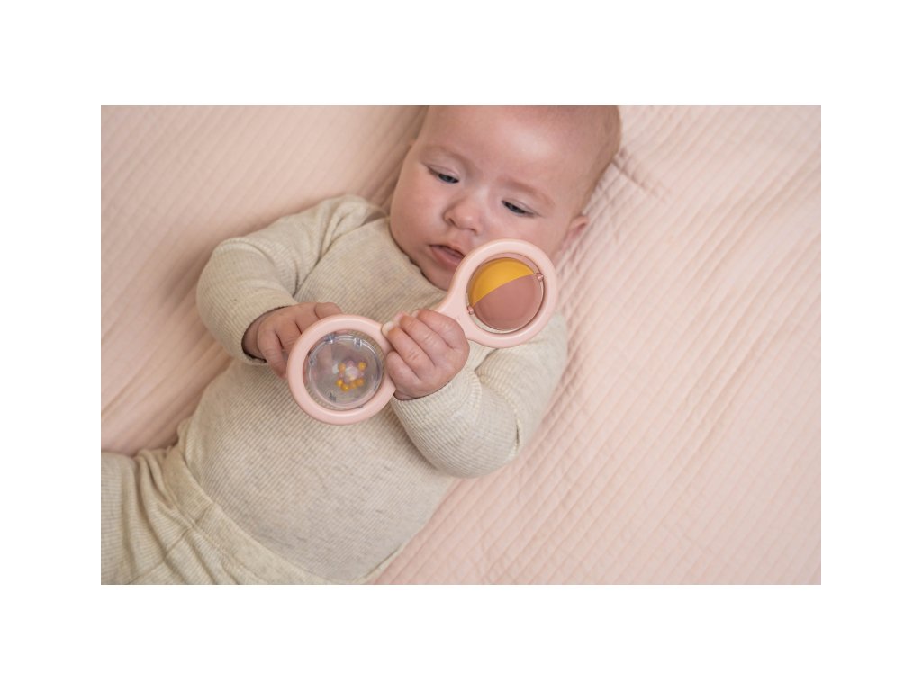 Chrastítko se dvěma otáčejícími se kuličkami je ideální jako první hračka pro vaše miminko. Pozornost dítěte upoutají chrasticí korálky v průhledné kuličce i střídající se barvy při otáčení dvoubarevné kuličky. Chrastítko má tvar pro snadné uchopení malými dětskými ručičkami. Rozměry: 14,5 x 5,5 x 4 cm Vhodné pro děti od narození.