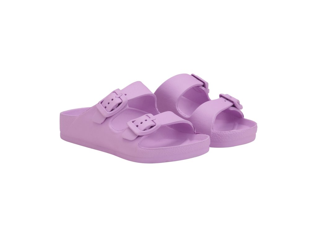 Elegantní barevné dámské sandály v jednobarevné barvě s přezkami. Sandály mají dva pásky přes nohu a zapínají se na kovové přezky.