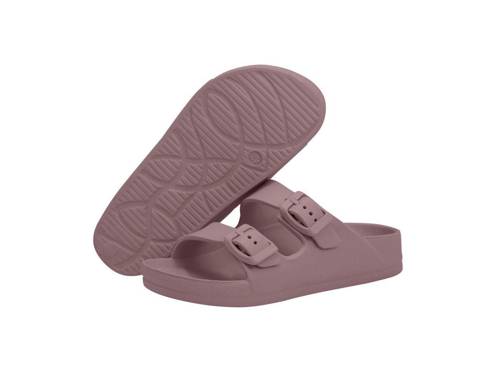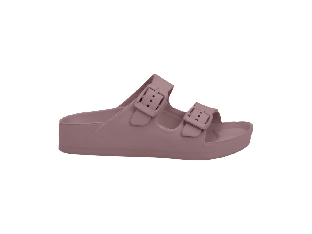 Elegantní barevné dámské sandály v jednobarevné barvě s přezkami. Sandály mají dva pásky přes nohu a zapínají se na kovové přezky.
