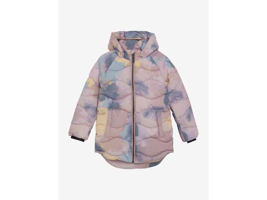 Teplá dlouhá prošívaná sněhová bunda pro vaše dítě z odolného materiálu s celoplošným potiskem.