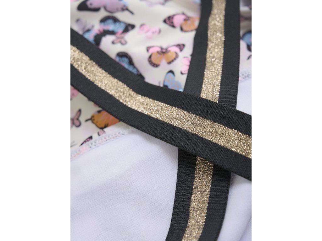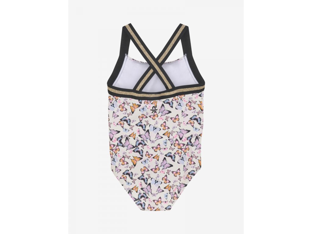 Dívčí jednodílné plavky s bílým podkladem a potiskem motýlků.