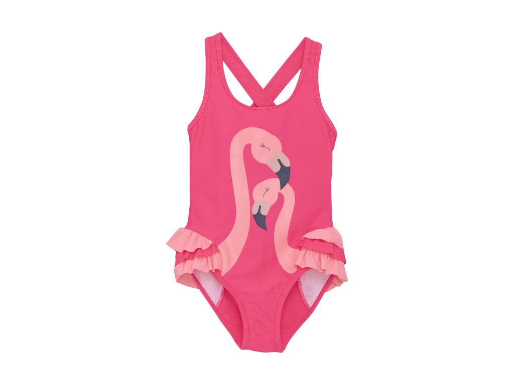 Jednodílné plavky s plastickou aplikací plameňáků v krásné růžové barvě.