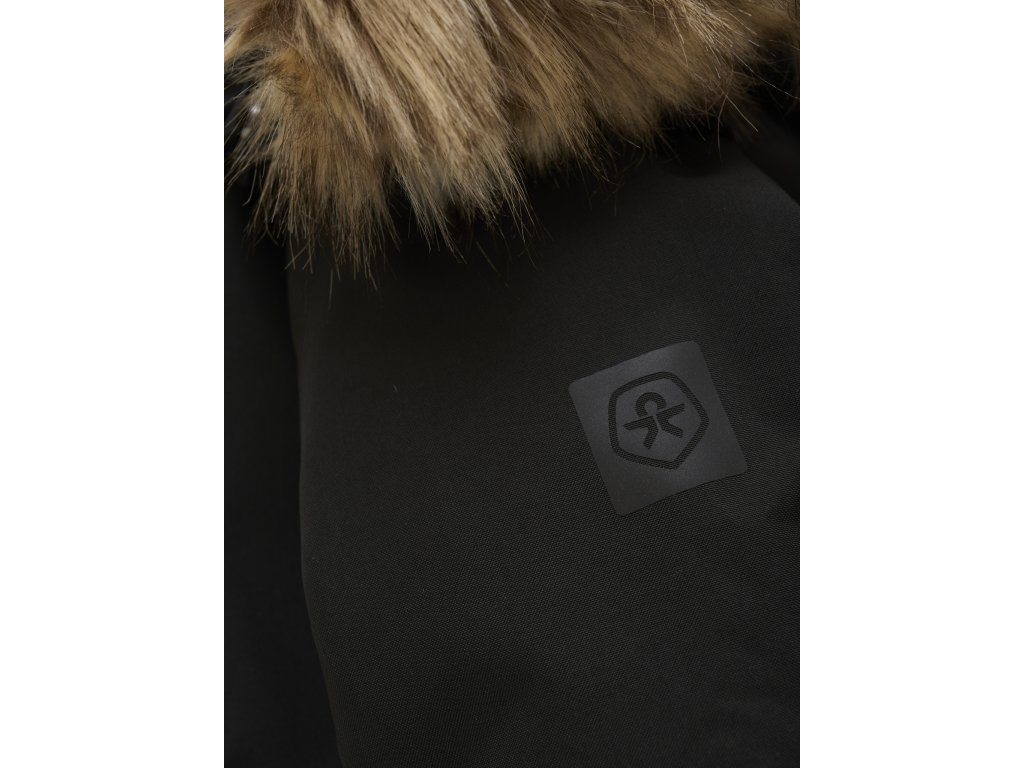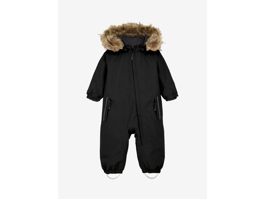 Kombinéza má odnímatelnou kapuci, ze které lze sundat umělou kožešinu.