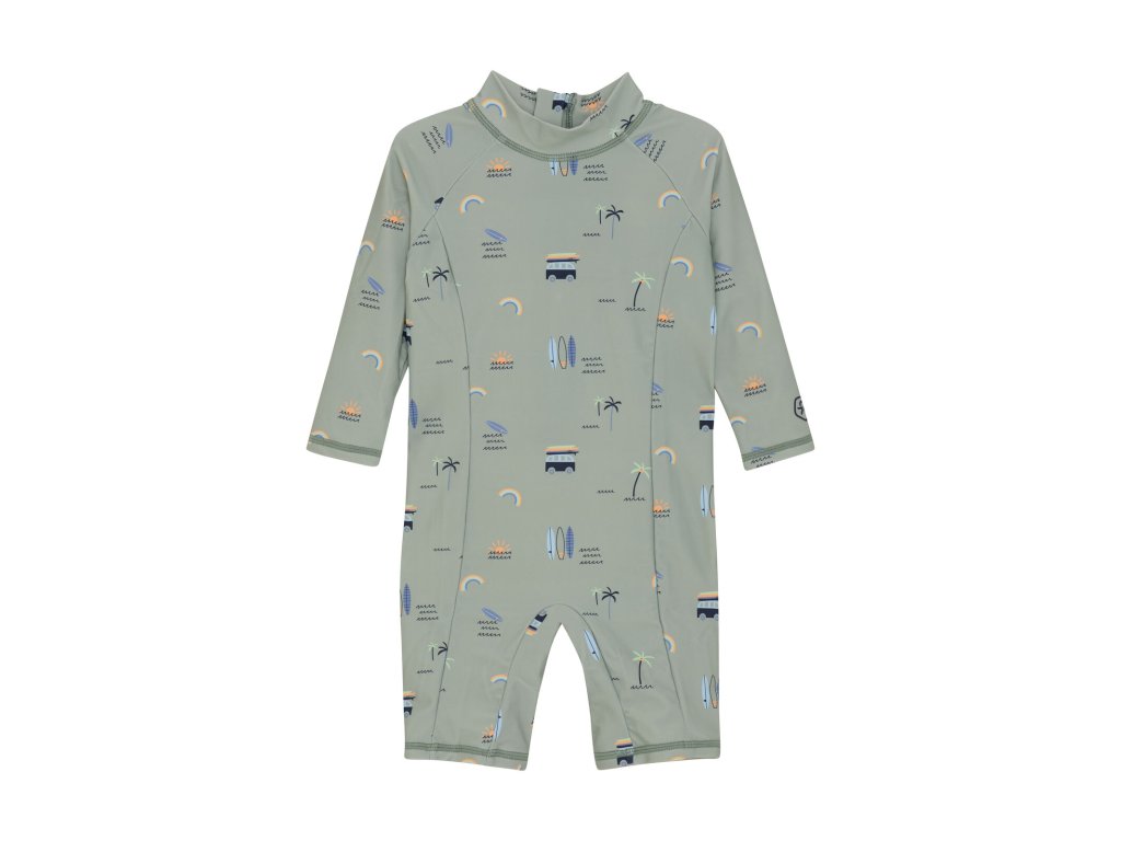 Jednodílný koupací oděv s motivem pro děti od značky Color Kids, který ochrání proti slunci. S vysokým ochranným faktorem UPF - ochrana odpovídá ultrafialovému záření. S dlouhými rukávy a nohavicemi. Na zádech se zapíná na zip.
