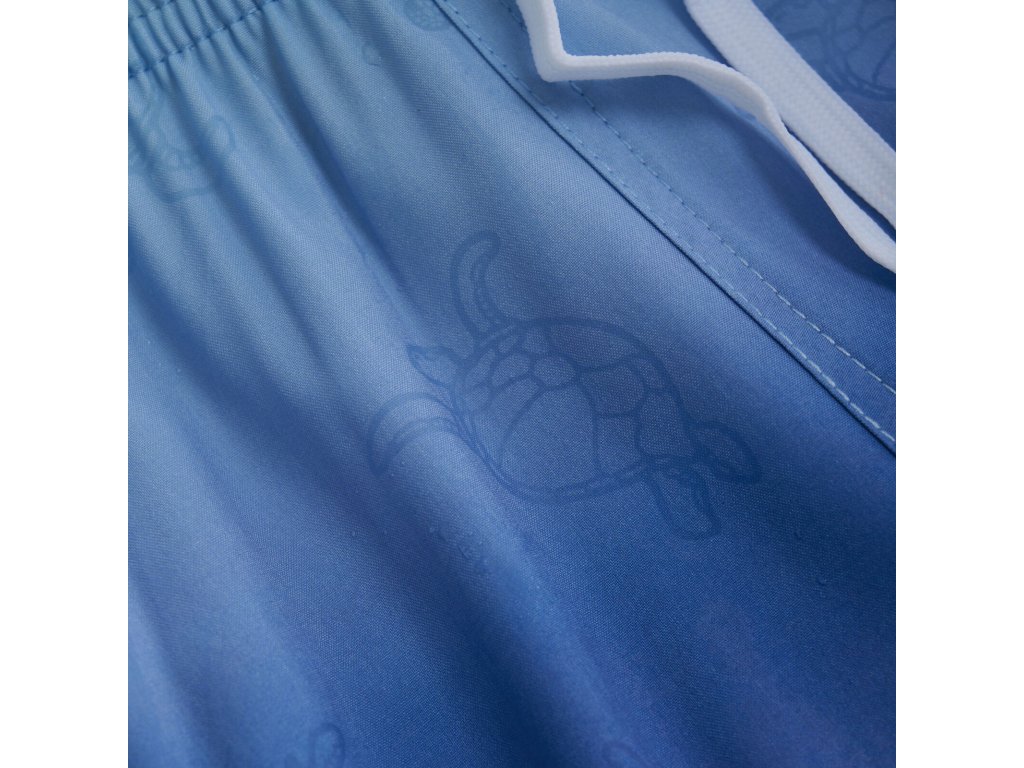 Koupací šortky z rychleschnoucí látky s měnícím efektem. Po namočení šortek vodou se na látce objeví obrázky želviček.