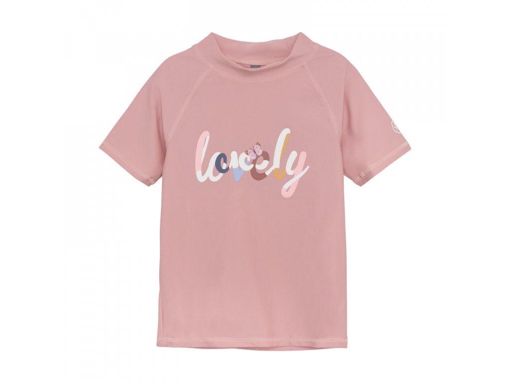 Koupací UV tričko s krátkým rukávem a potiskem na přední straně.