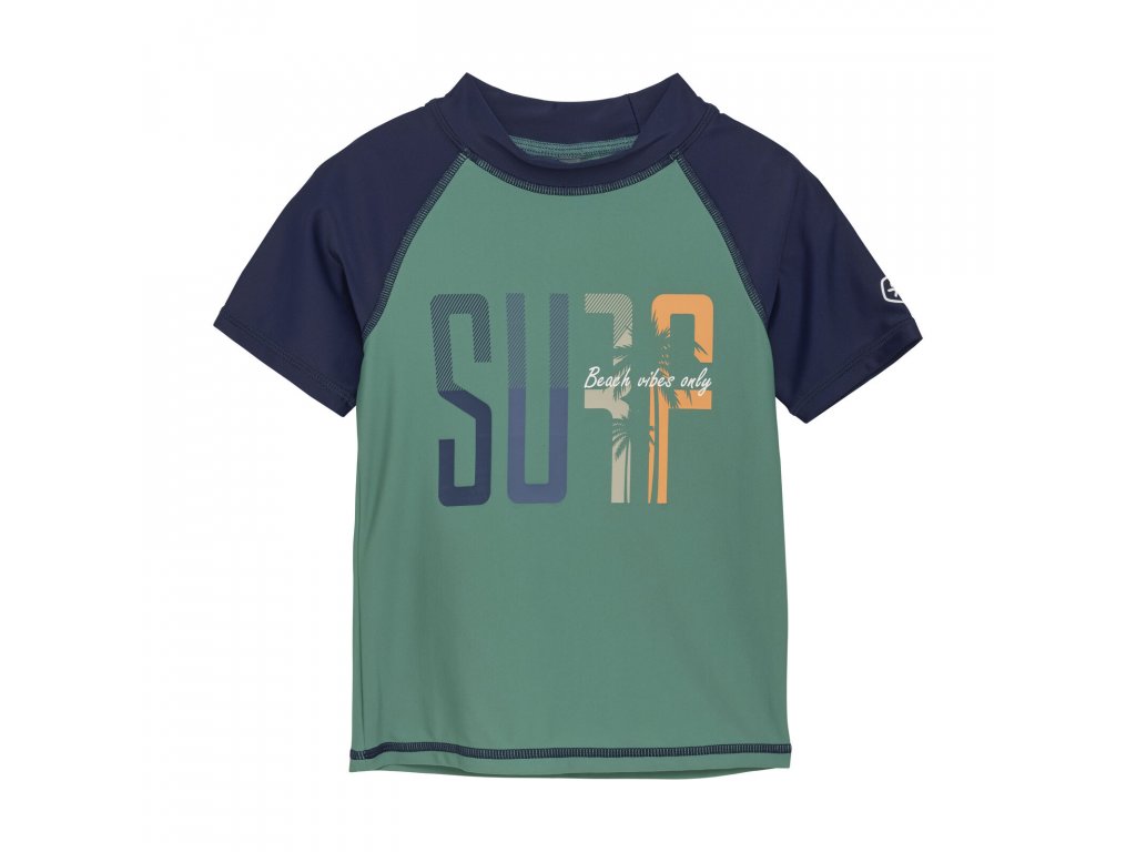 Koupací UV tričko s krátkým rukávem a potiskem na přední straně.