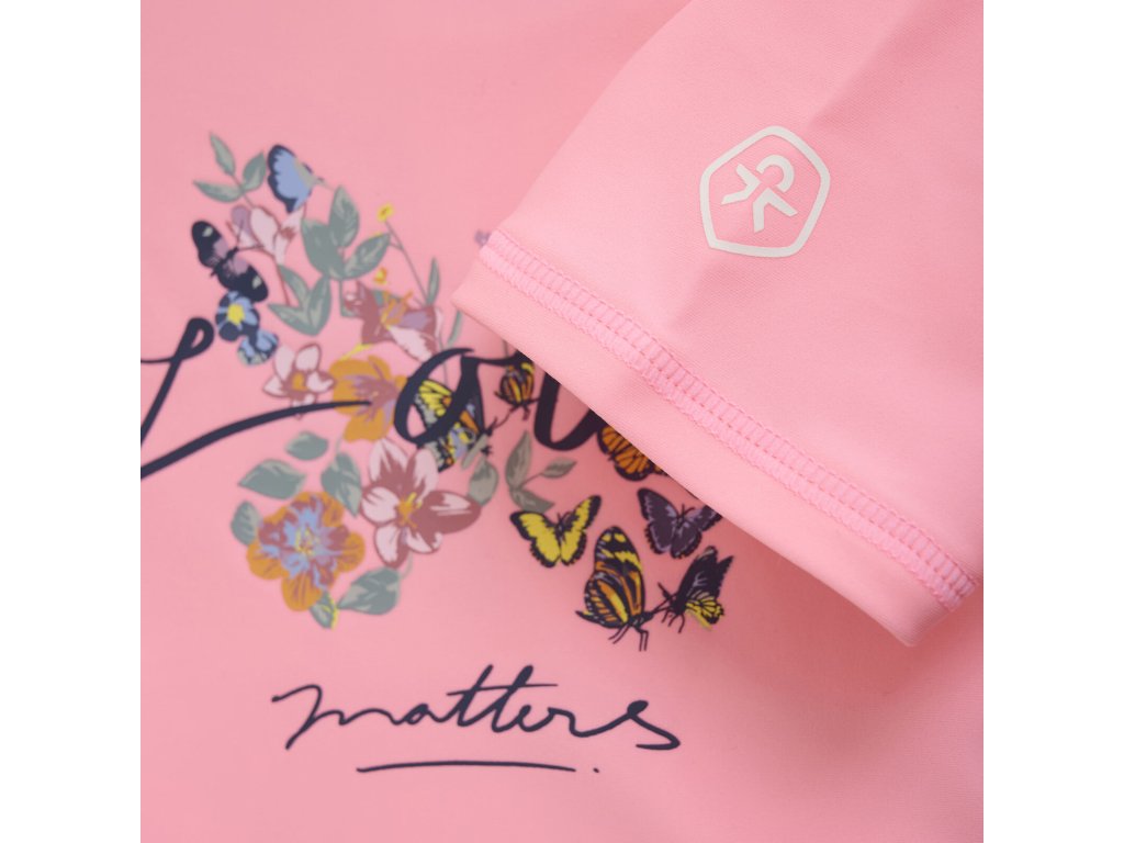 Koupací UV tričko s krátkým rukávem a potiskem na přední straně.