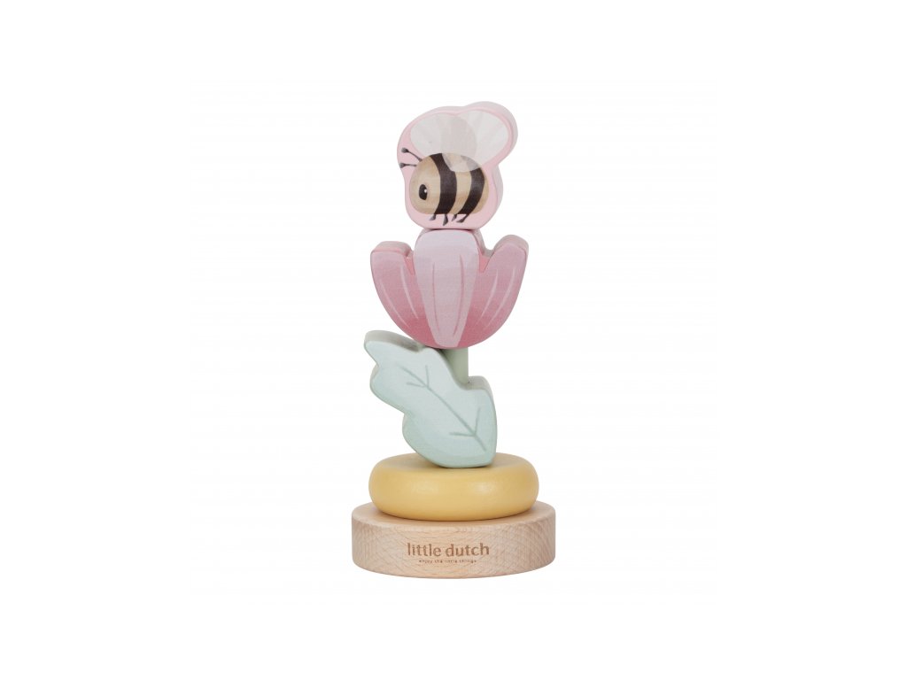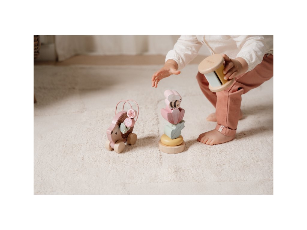 Dárková sada obsahuje tři krásné dřevěné hračky s něžným potiskem motivů ze života na zahradě. Chrastítko ve tvaru válečku při pohybu jemně cinká, skládací květina s včeličkou vybízí k rozložení a znovu složení. Třetí hračkou je roztomilý ježek na kolečkách se spirálou, na které se pohybují dřevěné korálky v podobě kytiček, listu a včelky. Dárkový set je součástí designové kolekce hraček a doplňků Little Dutch Fairy Garden inspirované životem na zahradě. Rozměry boxu: 21 x 20 x 8,4 cm Vhodné pro děti od 12 měsíců.