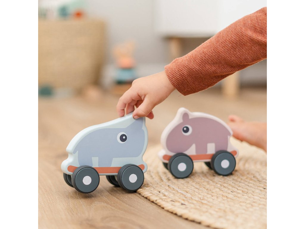Kulatá rukojeť zajišťuje dobrý úchop pro malé ruce. Díky měkkým kolečkům je hračka šetrná k podlaze. Vyrobeno ze zodpovědně získaného dřeva a natřeno bezpečnou vodou ředitelnou barvou, takže si s ním vaše dítě může bezpečně hrát.