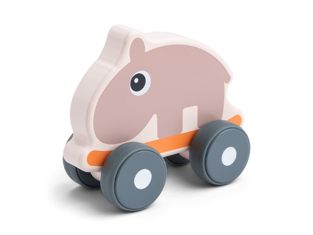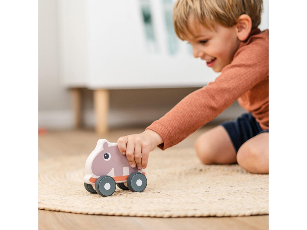 Kulatá rukojeť zajišťuje dobrý úchop pro malé ruce. Díky měkkým kolečkům je hračka šetrná k podlaze. Vyrobeno ze zodpovědně získaného dřeva a natřeno bezpečnou vodou ředitelnou barvou, takže si s ním vaše dítě může bezpečně hrát.