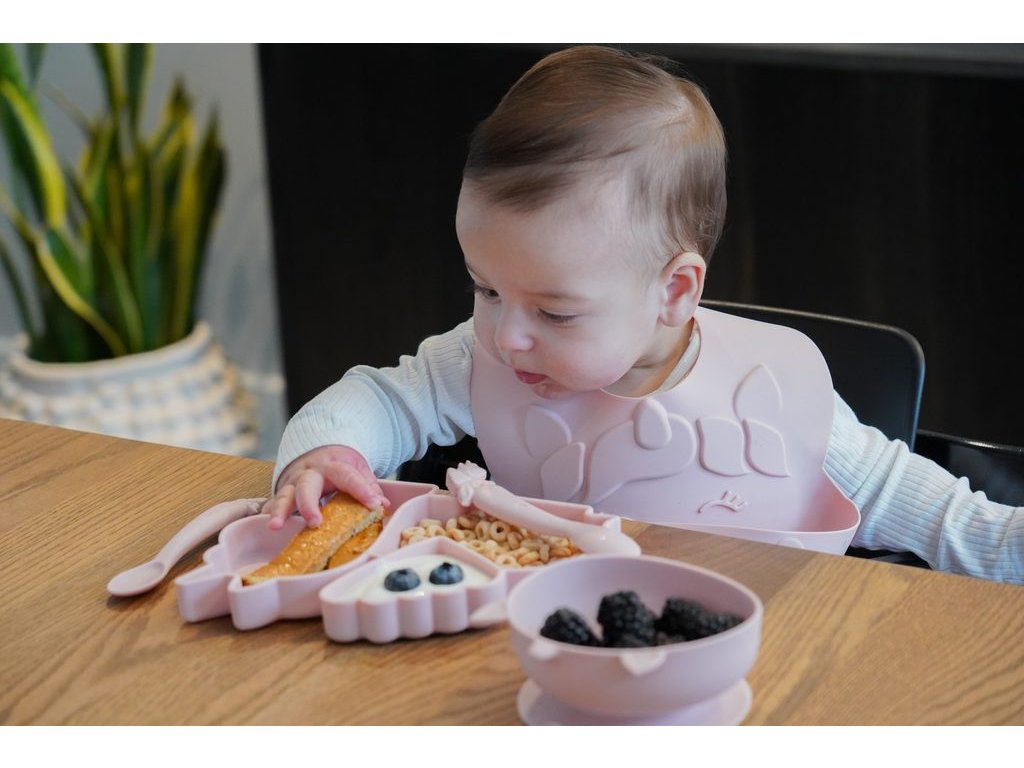 Tento 5dílný silikonový set kombinuje bezpečnost, hravý design a praktičnost pro snadné stolování bez nepořádku.