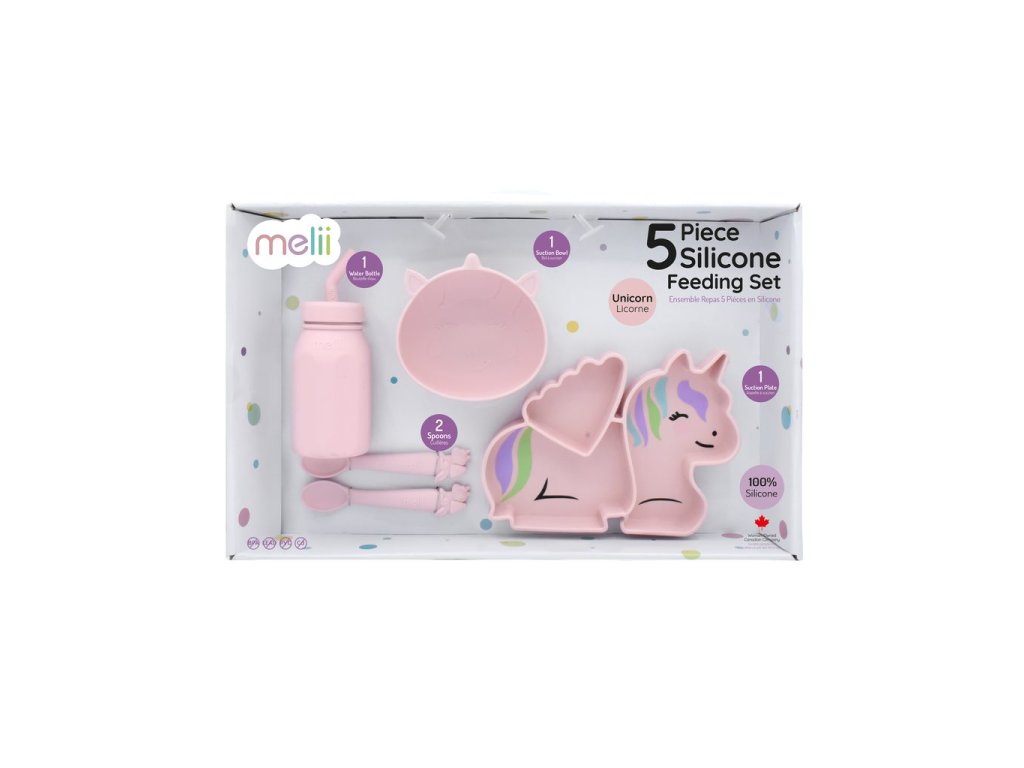 Dětská silikonová jídelní sada, 5 dílná - Jednorožec