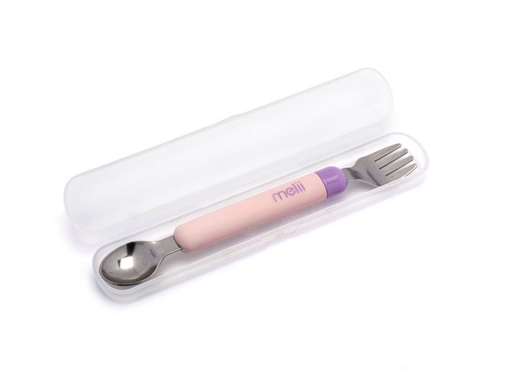 Dětská vidlička a lžička s pouzdrem - Růžová/fialová