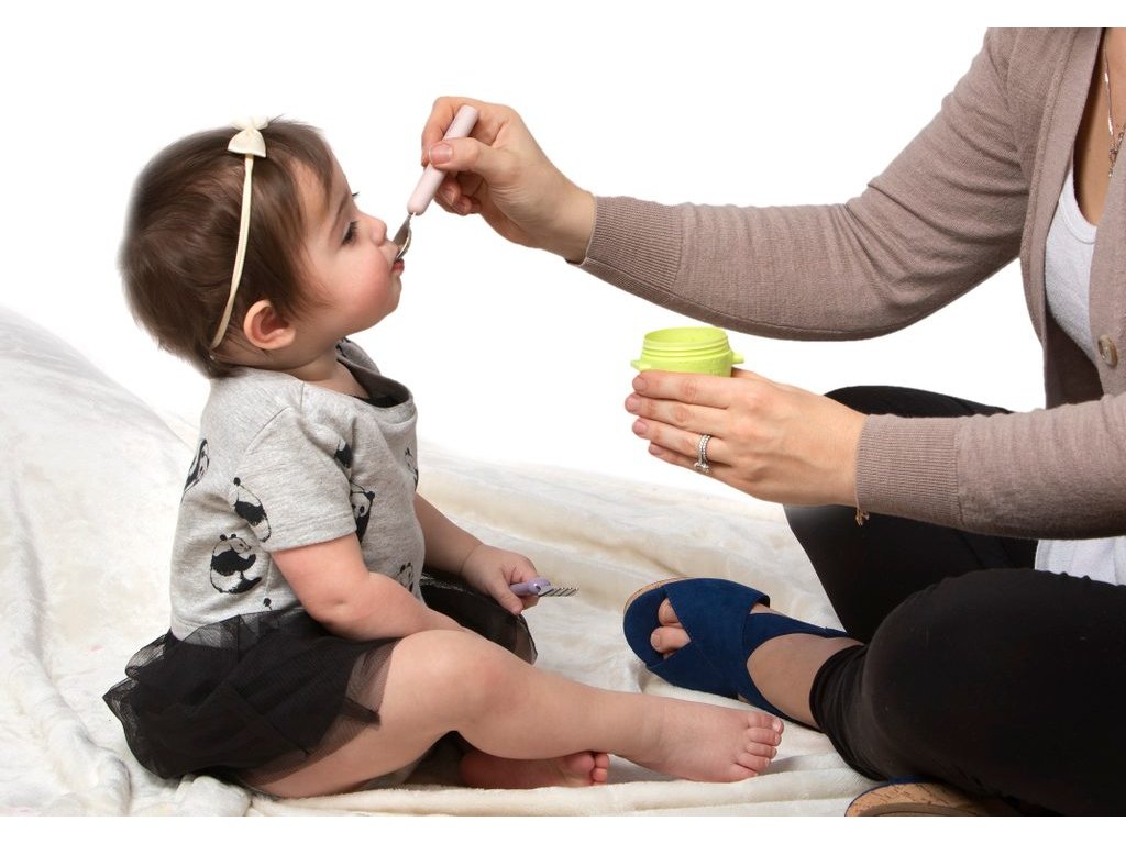 - vidličkou nakrmíte své dítě nebo ji můžete nechat díky malé rukojeti v rukou dítěte, aby se krmilo samo