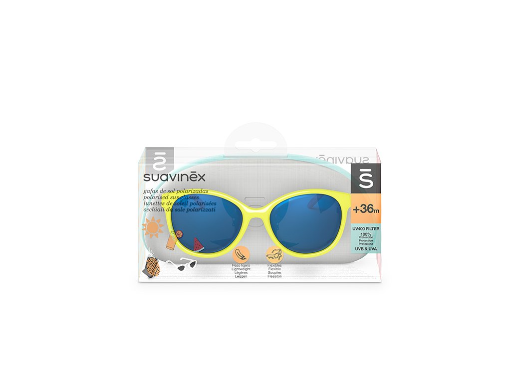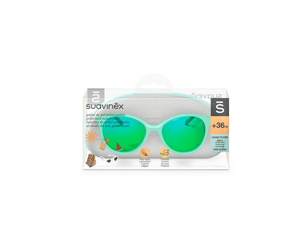Kolekce slunečních brýlí Suavinex propojuje zdraví s módou, což je jeden z charasteristických znaků odborníků na kojenecký sortiment péče o děti. Jednak se jedná o produkt zaměřený na prevenci, protože čočky brýlí jsou polarizované s UV400 filtrema jednak obsahuje lehké flexibilní obroučky, které se přizpůsobí dětskému obličeji.