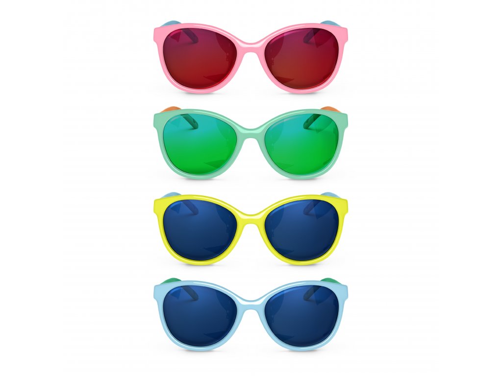 Důkaz, že být trendy není v rozporu s důrazem na bezpečnost, je ztělesněn v této nové kolekci stylových brýlí. Plastové ohebné obroučky ve velké barevné škále lze kombinovat s oblečením dětí a barevné čočky se zrcadlovým efektem jsou prakticky nerozbitné. Dostupné ve třech velikostech (12-24m, 24-36m, +36 měsíců), kdy každá z nich splňuje konkrétní požadavky v každé fázi vývoje dětí. Všechny mají společný rys, kterým je jejich kulatý nebo hranatý tvar pro lepší přizpůsobení, protože v raném věku není kořen nosu dětí ještě zcela vytvořen. S jakýmikoli brýlemi z této kolekce mohou děti běhat a skákat bez obav, že se jejich brýle rozbijí. Mají také další bezpečnostní prvky, především pro velikosti +36 měsíců, které jsou doplněny o šňůrku, která perfektně sedí na hlavě.