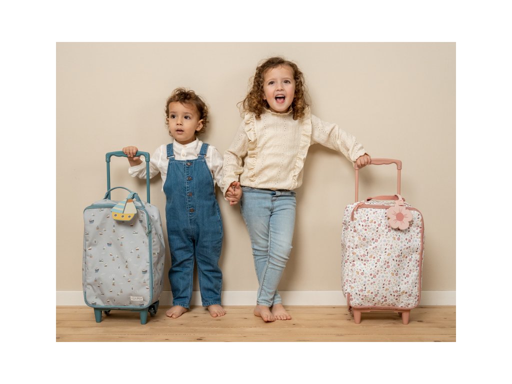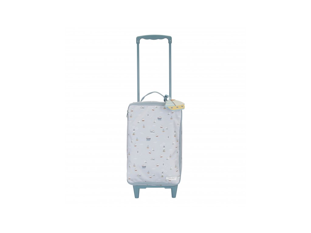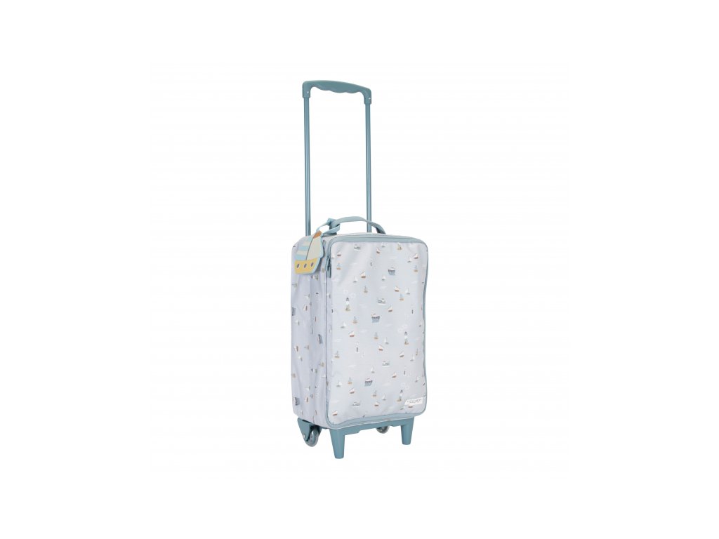 Krásný a praktický dětský kufr na kolečkách je ideální zavazdlo na dovolenou i na přespání vašeho dítěte u babičky s dědou či u kamaráda. Kufr nabízí dostatek místa na oblečení, plyšovou hračku i další nezbytnosti. Vnitřní kapsa na zip na víku kufru umožňuje bezpečné uložení drobností. Závěsná visačka s jmenovkou vám umožní kufr podepsat. Druhou jmenovku najdete i uvnitř kufru na jeho víku. Kufr je vybaven vytahovací rukojetí pro jízdu na kolečkách i držadlem pro nošení v ruce. Stěny kufru jsou z pevného potištěného plátna a díky tomu je kufr velmi lehký. Kufr je součástí designové kolekce Little Dutch Námořnický záliv, ve které najdete ložní prádlo, dekorativní doplňky do dětského pokoje, dřevěné a plyšové hračky i jídelní doplňky pro dětské stolování. Rozměry: 49 x 27,5 x 14 cm Výška s vytaženou rukojetí: 80 cmDoplňkové parametry