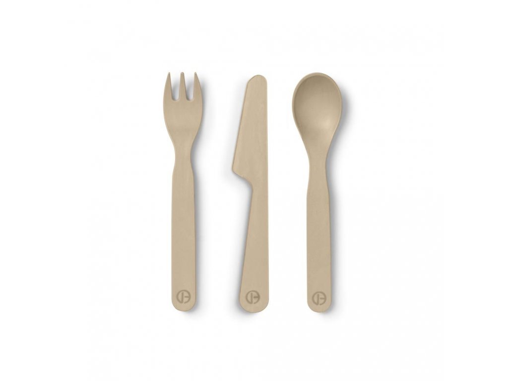 Sada příborů pro malé děti, které samy objevují radost z jídla. Příbor je navržen speciálně pro malé dětské ruce. Lžička, vidlička i nůž jsou vyrobeny z PLA. PLA je rostlinný a biologicky odbouratelný materiál vyrobený ze škrobu z obnovitelných zdrojů, jako jsou kukuřice a maniok, namísto neobnovitelného petrochemického oleje nebo plynu používaného v běžných plastech. Má dobrou biologickou rozložitelnost, takže při likvidaci může být za určitých podmínek zcela rozložen mikroorganismy. PLA je proto obecně uznáván jako materiál šetrný k životnímu prostředí.