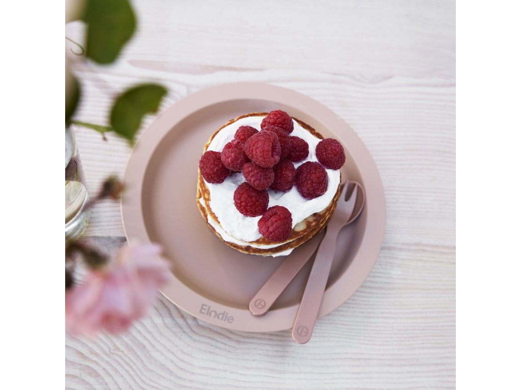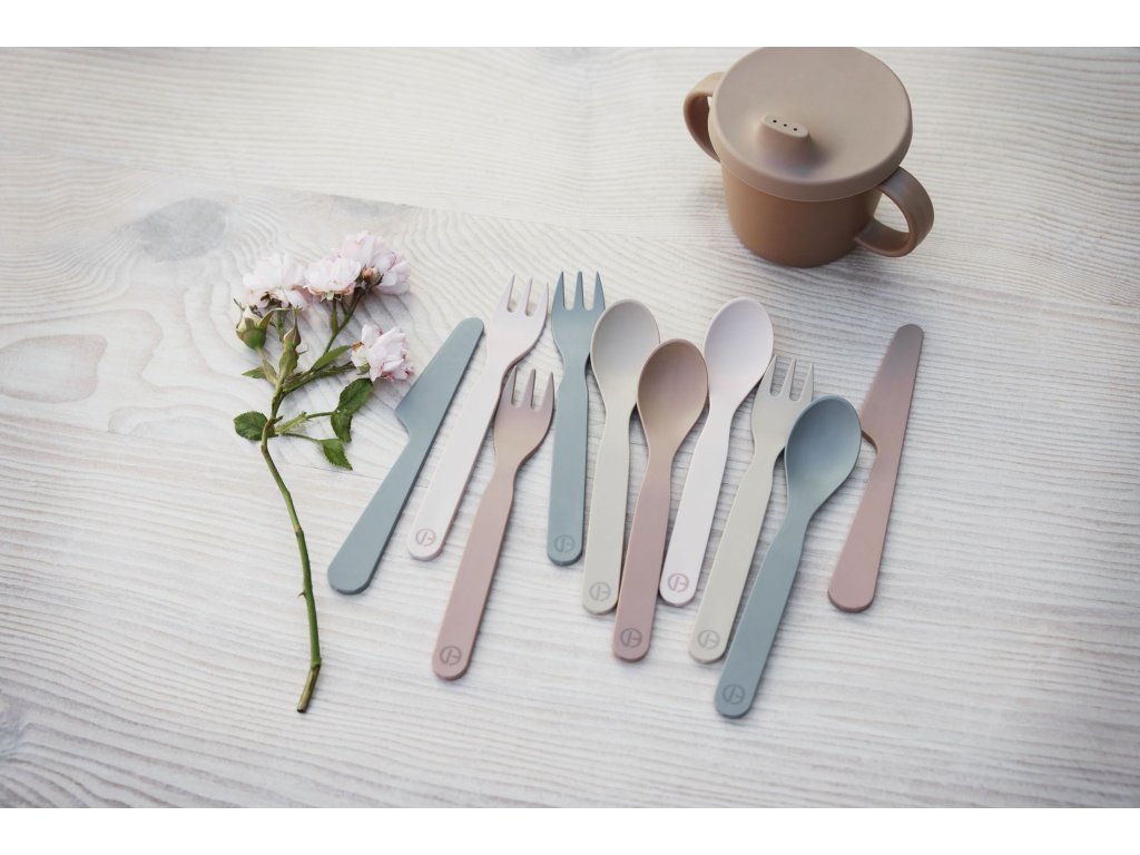 Sada příborů pro malé děti, které samy objevují radost z jídla. Příbor je navržen speciálně pro malé dětské ruce. Lžička, vidlička i nůž jsou vyrobeny z PLA. PLA je rostlinný a biologicky odbouratelný materiál vyrobený ze škrobu z obnovitelných zdrojů, jako jsou kukuřice a maniok, namísto neobnovitelného petrochemického oleje nebo plynu používaného v běžných plastech. Má dobrou biologickou rozložitelnost, takže při likvidaci může být za určitých podmínek zcela rozložen mikroorganismy. PLA je proto obecně uznáván jako materiál šetrný k životnímu prostředí.