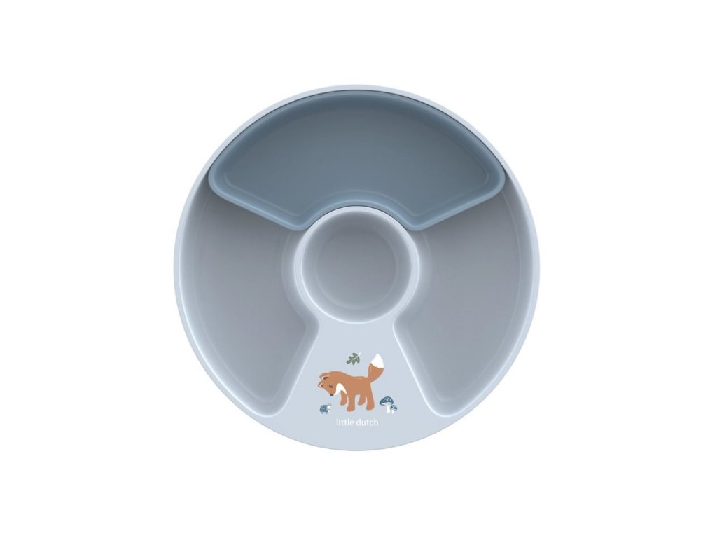 Dětský talíř s krásným potiskem má protiskluzové dno a vysoký okraj, který pomáhá dítěti jídlo nabrat na lžíci. Talíř je tak ideální pro první samostatné stolování dítěte. Vyjímatelná přihrádka umožňuje rozdělení jednotlivých částí jídla do 2, 3 nebo 4 přihrádek. Díky praktickému úchytu se talíř snadno přenáší. Je vyroben z lehkého, mimořádně odolného plastu. Talíř je součástí designové kolekce hraček a doplňků pro děti Little Dutch Forest Friends, inspirované životem v lese.