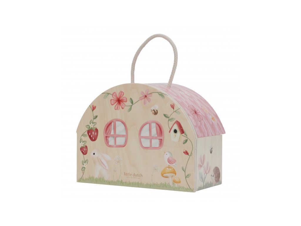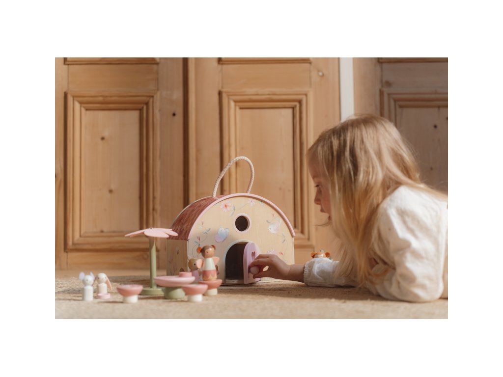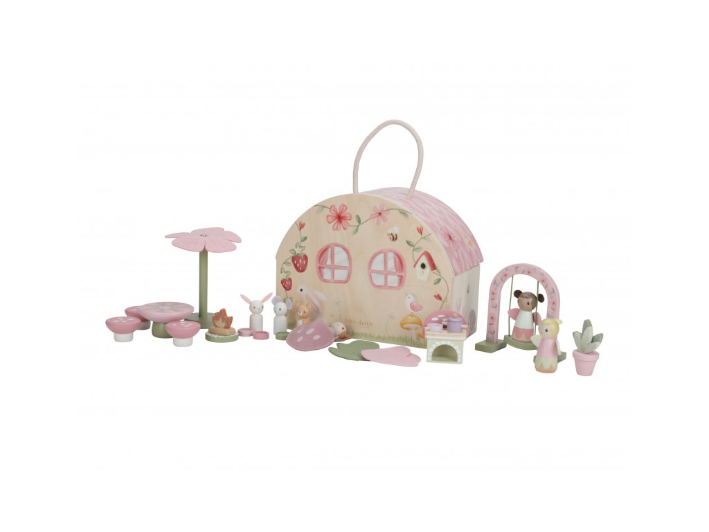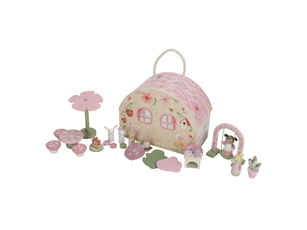 Po skončení hry vše snadno uklidíte zpátky do domečku, který je díky držadlu i snadno přenosný. Hračka je součástí designové kolekce hraček a doplňků Little Dutch Fairy Garden inspirované životem na zahradě.