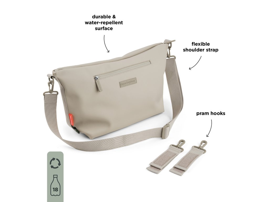 Tato písková taška na kočárek je praktický a stylový způsob, jak mít své nezbytnosti a nezbytnosti vašeho nejmenšího uspořádané a snadno dostupné. Bez námahy se připevňuje na madlo kočárku pomocí háčků na kočárek.