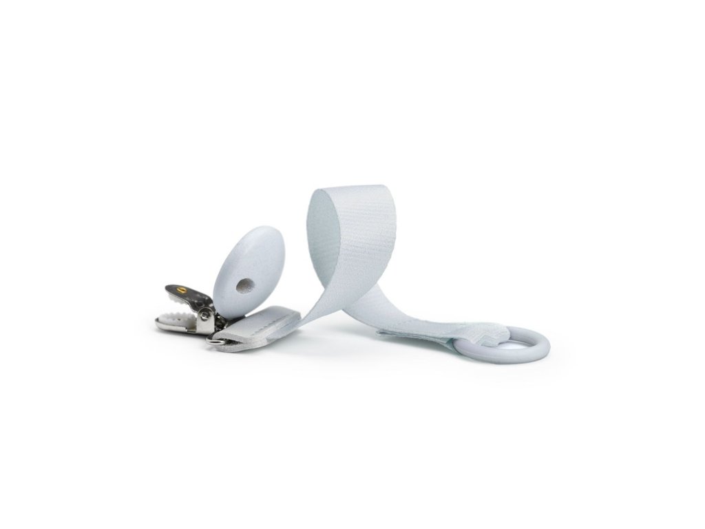 Praktický klips umožňuje připevnění dudlíku ke kočárku, sedačce, oblečení apod. Zabrání upadnutí nebo jeho ztrátě. Silikonový kroužek pasuje na většinu dudlíků, odolný kovový klip je bez niklu. Vyhovuje evropské bezpečnostní normě EN-12586:2007 + A1:2011.