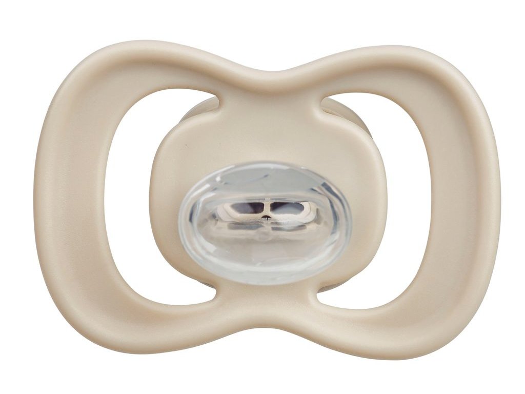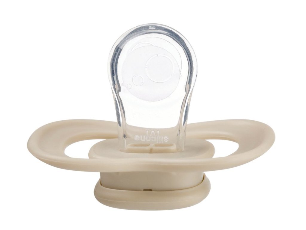 Vnější symetrická barevná část dudlíku s větracími průduchy (štít) obsahuje antimikrobiální přísadu na bázi stříbra, která eliminuje až 99,9% bakterií. Terčík s větracími průduchy zakrývá menší část kůže kolem pusinky dítěte a zmenšuje se tak riziko vzniku nechtěného ekzému pod terčíkem dudlíku. Symetrické tvarování barevného štítu zajišťuje optimální průchodnost vzduchu pod nosem dítěte.