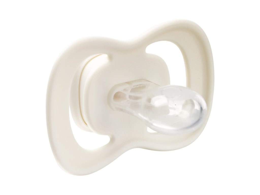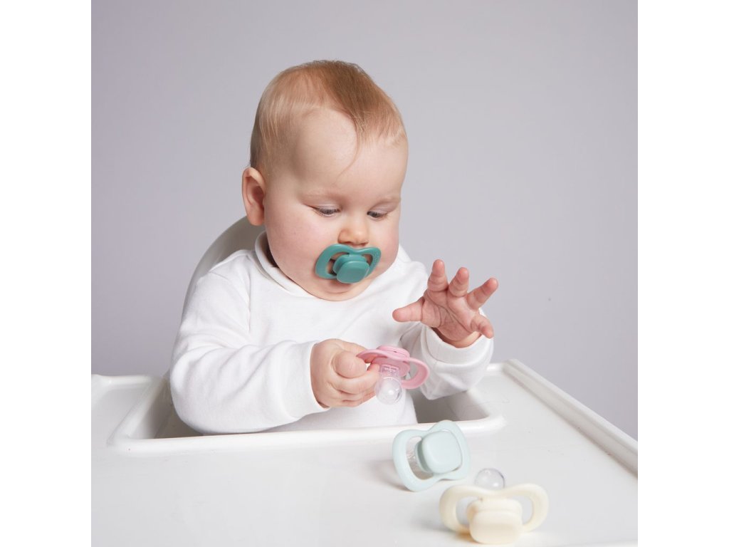 Jemná symetrická silikonová savička tvoří minimální tlak na horní patro dítěte. Tvar ortodontické savičky podporuje správný vývoj zoubků. Velikost 1 je vhodná pro děti od narození do 6 měsíců.