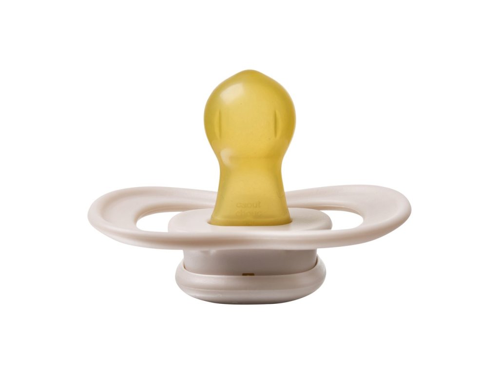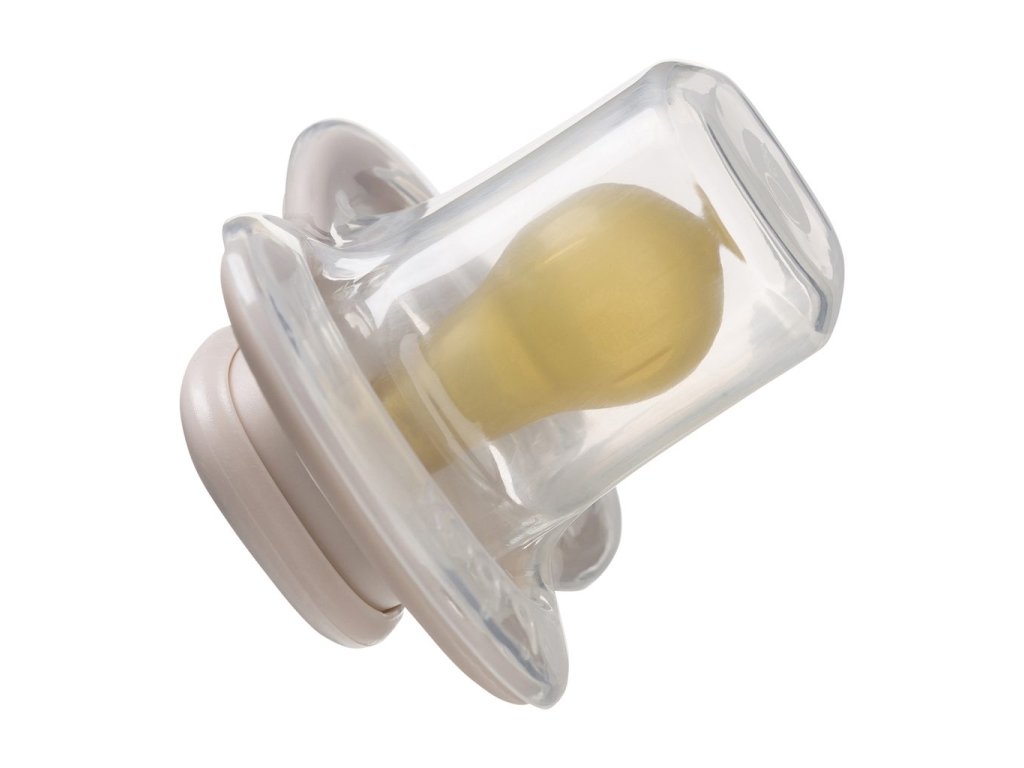 Jemná savička ve tvaru třešně je vyrobena z německého přírodního kaučuku (latexu). Velikost 1 je vhodná pro děti od narození do 6 měsíců.