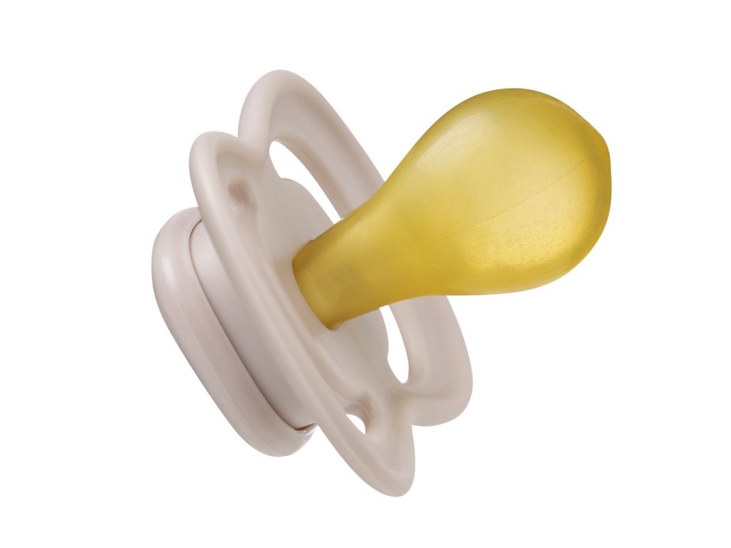 Jemná savička ve tvaru třešně je vyrobena z německého přírodního kaučuku (latexu). Velikost 2 je vhodná pro děti od 6 měsíců.